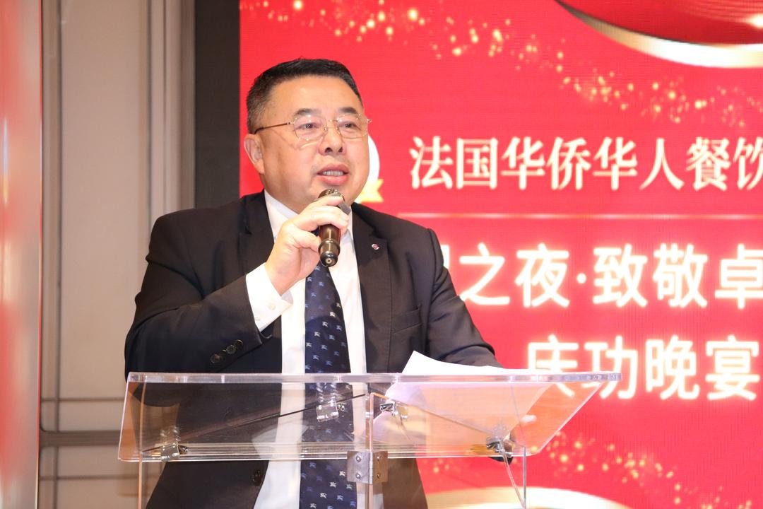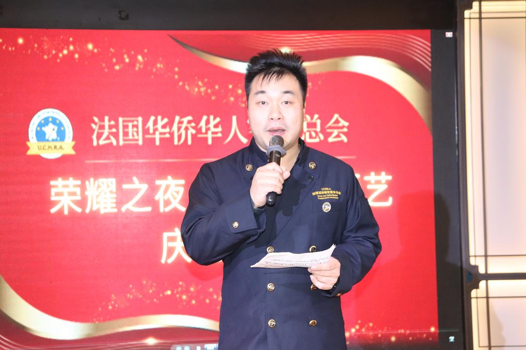 当晚,法国华侨华人餐饮总会秘书长李冰斯代表出差在外的会长黄美娜致辞,转达了黄会长对各位嘉宾的问候与祝贺。