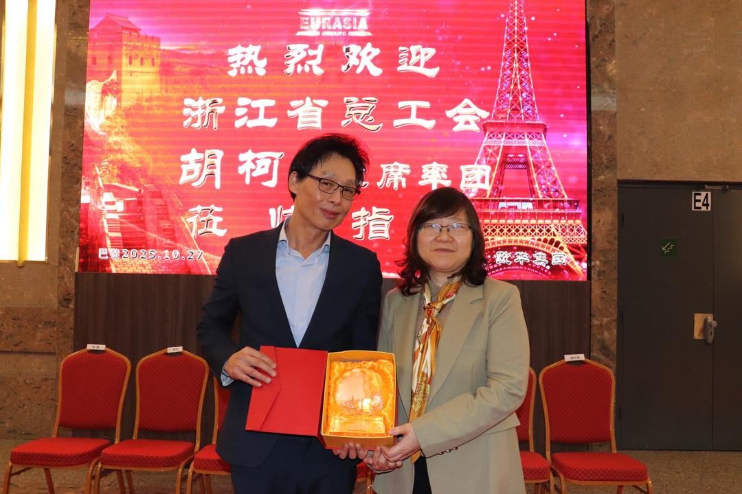 胡柯副主席表示,此次访问让浙江省总工会更加深入地了解法国华人企业的发展经验,希望未来能在企业管理、技能培训等方面展开更多务实交流。 活动中,双方互赠礼品,以示友谊与诚意,现场气氛热烈而温馨。