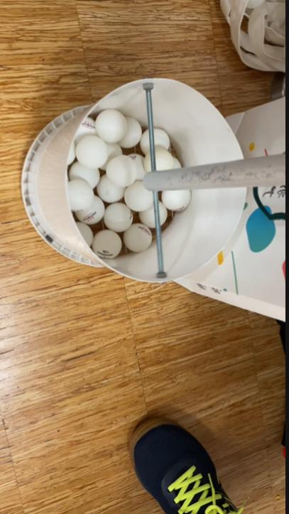 我瞪大眼睛:“这是什么高科技?!” 梁先生笑着说:“这是巴黎爱打乒乓球的温州人自己的小发明!” 这是什么样的“捡球神器”?仔细一看,原理其实并不复杂:一个塑料筐,底部戳上几个小洞,用几根有弹性的绳子交叉扎起来。当筐口压在地上的乒乓球上时,绳子一松一合,球就被“吞”进了筐里。