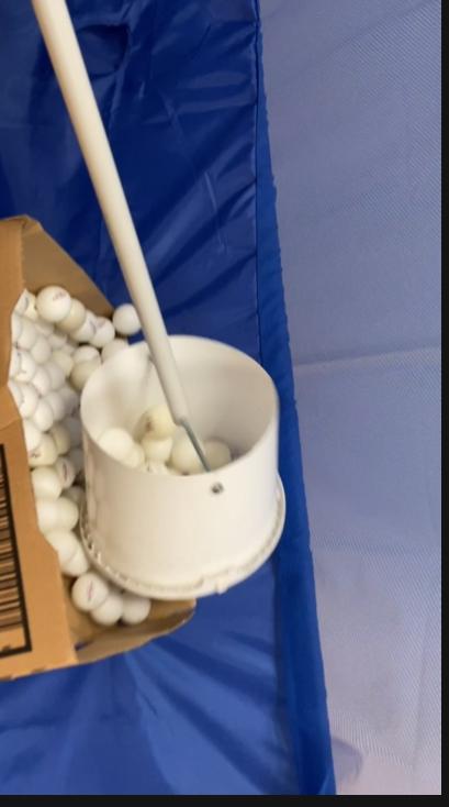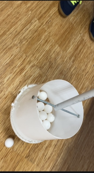 我赶紧拿过来试试——“啪嗒、啪嗒、啪嗒”——球一个接一个跳进筐里,干脆利索,毫不费劲。不一会儿,还没过瘾呢,地上的乒乓球就被我清得干干净净……