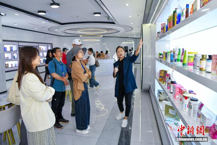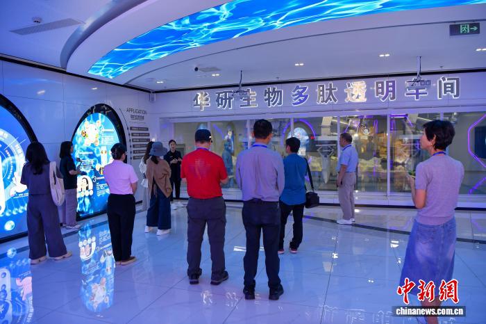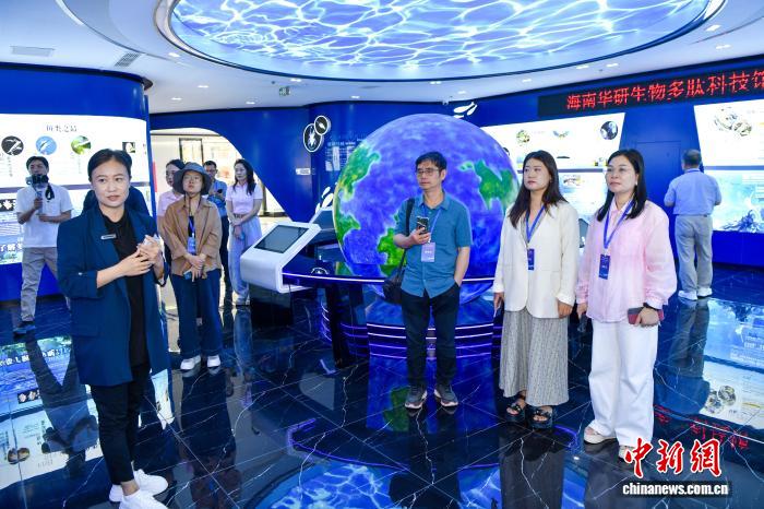 ![]() 图为海外华媒代表参观园区内的海南华研胶原科技股份有限公司。中新社记者 骆云飞 摄
