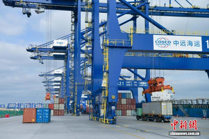 ![]() 图为洋浦国际集装箱码头。中新社记者 骆云飞 摄