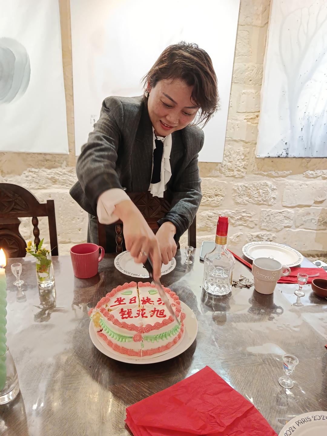 虽然身在法国,但却有熟悉的中国味道,像是一份来自远方的慰藉。朋友们围坐在一起,聊着巴黎的见闻、聊着未来的计划。 生日蛋糕开始,没有时差的距离,只有最真挚的祝福在空气里流动。 我猜钱亚旭的愿望,也许是关于未来的研究,也许是关于镜头里的故事,也许只是想让这份温暖在陌生的城市里延续得久一点...... 晚餐在欢声笑语中落下尾声,走出侨报社时,巴黎的夜风轻轻吹来,城市静谧而明亮。街灯下的影子被拉得很长,像是时间温柔的注脚。 这是我参加的一次有温暖、有陪伴、有家的味道,也有从远方带来的真心祝福的生日活动。 愿未来的日子里,她在巴黎的每一步,都能踩在光亮处;愿她的镜头继续记录世界的美好;愿她走得更远,却依然感受到来自朋友们最真挚的温暖。 钱亚旭,熊老师祝你生日快乐!