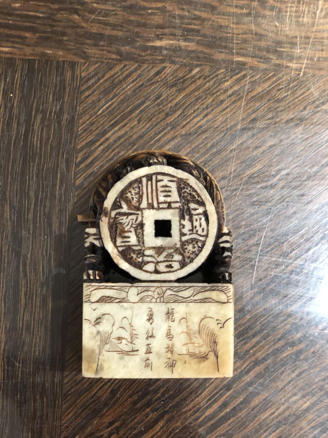 我虽然是外行,但从第一眼的观感与触感而言,材质不像传统玉石,更像骨质或仿骨材料。 其次,无论是雕刻风格、十二生肖构图,还是背面的“顺治通宝”样式,都与上世纪外销工艺品、纪念摆件或旅游礼品较为接近。底部刻有英文姓名,也与“外国人定制纪念物”的特征吻合。 不过,这些都只是我个人的初步推测,并不能作为专业结论。因此,我想请问: 有没有哪位朋友、行家、专家,愿意帮忙看看这件“神秘宝物”到底是什么年代、什么材质,以及是否具有收藏价值? 如能指点一二,不胜感激。如愿意收藏,也请和我联系。 推广