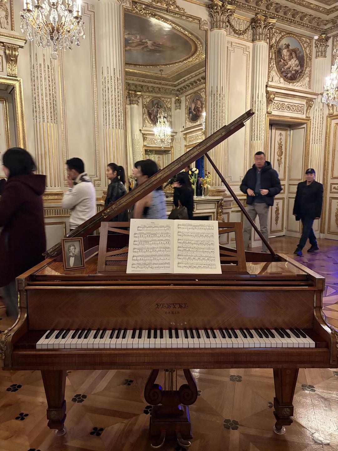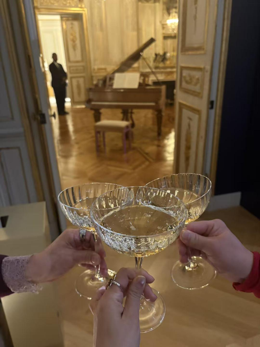 目的地不是什么普通景点,而是巴黎最昂贵的心脏——旺多姆广场 12 号。这里是拿破仑曾经的珠宝圣殿、尚美巴黎(Chaumet)的灵魂宅邸,更是肖邦生命最后的安静港湾。能够在这样一座建筑里参加一场小型聚会,我必须承认,命运偶尔也会送来一些太过奢侈的温柔。 走向旺多姆广场的那段路,那根由拿破仑用缴获的一千门大炮铸成的纪念柱静静矗立,像是无声地提醒我们:欢迎来到荣耀与美学的交汇处。 推开旺多姆 12 号尚美巴黎的大门,像是进入一个被皇室祝福过的空间。这里,是自 1780 年以来欧洲最显赫的皇家珠宝传奇的核心;也是 LVMH 珠宝工坊里最神秘的一间。 馆内的工作人员彬彬有礼,语调里带着那种“巴黎式优雅”,仿佛他们从未匆忙过。闺蜜被带上二楼——那里,是肖邦曾经写下乐章的地方。很难形容当时的心情,就好像每走一步,都可能踩到一段历史的心跳…… 肖邦沙龙的灯光柔若晨曦,钢琴静静立着,像在等待某双手重新唤醒它。1849 年,那位浪漫主义最敏感的灵魂在这里写下最后的篇章。法国贵妇们曾以能在他的房间“激动得昏厥”而自豪,而闺蜜们今晚竟能在同样的空间举杯香槟,这种奇妙感让人忍不住在心里轻轻地笑:巴黎果然是个会给人惊喜的城市。