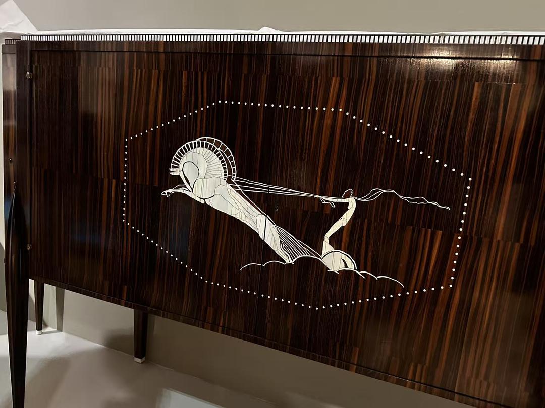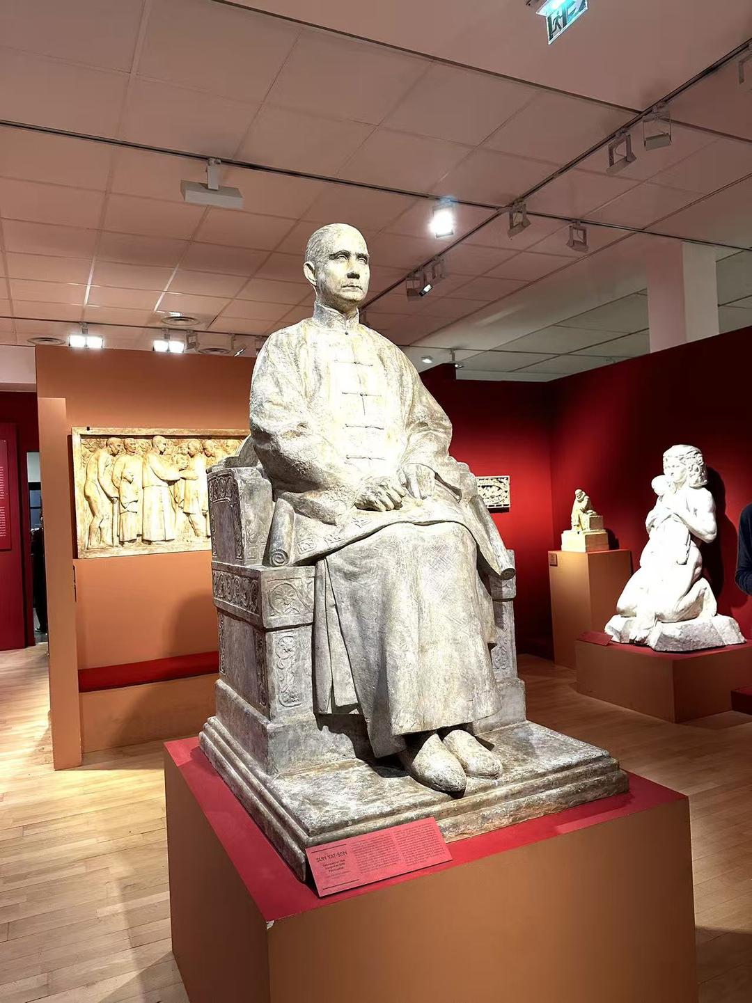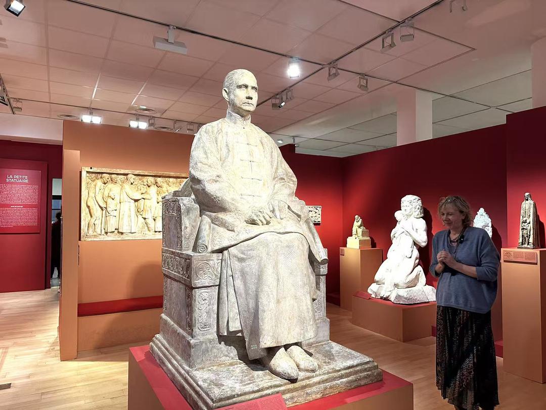 三十年代博物馆是世界上少数专门收藏法国 1930 年代及装饰风艺术(Art déco)作品的博物馆,而兰多夫斯基博物馆则专注展示波兰裔法国雕塑大师保罗·兰多夫斯基(Paul Landowski)的艺术生涯。 专职导游 SAUVAGE 女士从二楼油画与雕塑区开始带领大家参观,详细介绍了三十年代法国在一战与二战之间的社会背景,以及在复杂时代氛围中孕育出的装饰风艺术潮流。由于三十年代博物馆隶属于布洛涅-比扬古市政府,馆内收藏了大量巴黎地区艺术家作品,展品丰富独特。 随后,团队参观了建筑、宗教与殖民时期主题展区,并来到三楼正在布展的三十年代家具与家居装饰展。许多作品均出自法国上世纪最具影响力的设计大师。例如: Jacques-Emile Ruhlmann(鲁尔曼) 的著名 战车橱柜(Meuble au char),以奢华材质与优雅线条惊艳众人。 Le Corbusier(勒·柯布西耶) +Pierre Jeanneret × Charlotte Perriand 合作设计的躺椅,被称为「休息机器」。其人体工学结构与多角度调节设计,让现场参观者直呼其现代性至今不过时。 第三站:保罗·兰多夫斯基博物馆 —— 走近孙中山坐像的诞生故事 参观最终来到四楼的兰多夫斯基博物馆。兰多夫斯基大师与中国渊源深厚,最著名的便是他为“国父”孙中山先生创作的坐像——今日南京中山陵的大理石孙中山雕像即出自他之手。