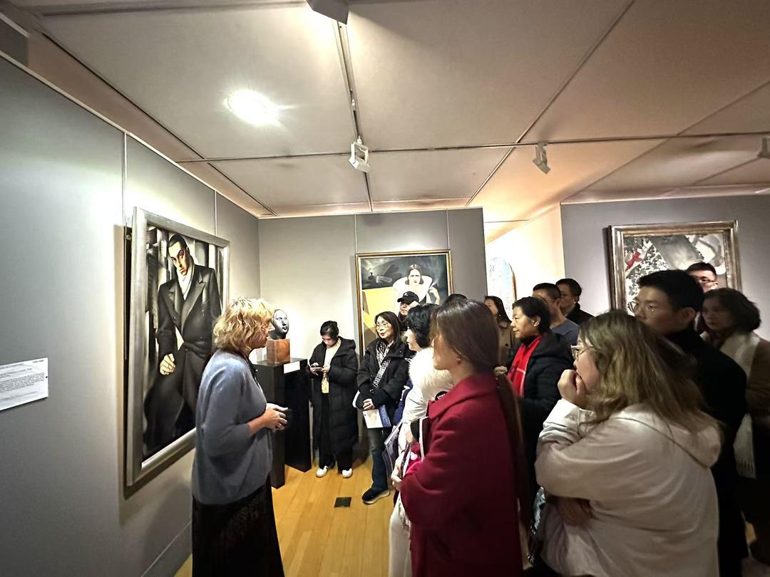 第一站:走进兰多夫斯基艺术空间 —— 《秋季沙龙艺术展》深度导览 活动首站来到保罗·兰多夫斯基艺术空间,参观享誉当地的 《秋季沙龙艺术展》(SALON D’AUTOMNE 2025)。 策展人兼布洛涅-比扬古工艺美协主席 Jean-Christophe PAOLINI 先生亲自迎接参观团队。他向法国华人旅游协会黎新会长及同行嘉宾致以热情欢迎,并结合展览作品,为大家详细讲解如何从专业角度欣赏法国艺术的多元风格——包括抽象主义、立体主义、写实主义与野兽派等。