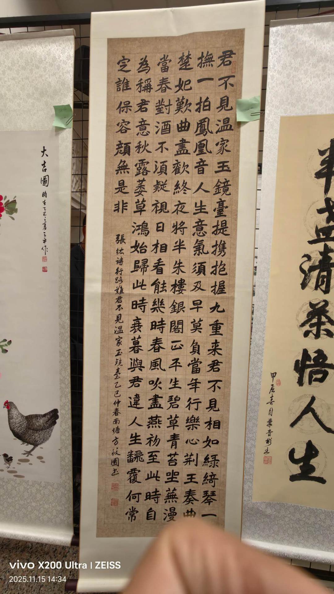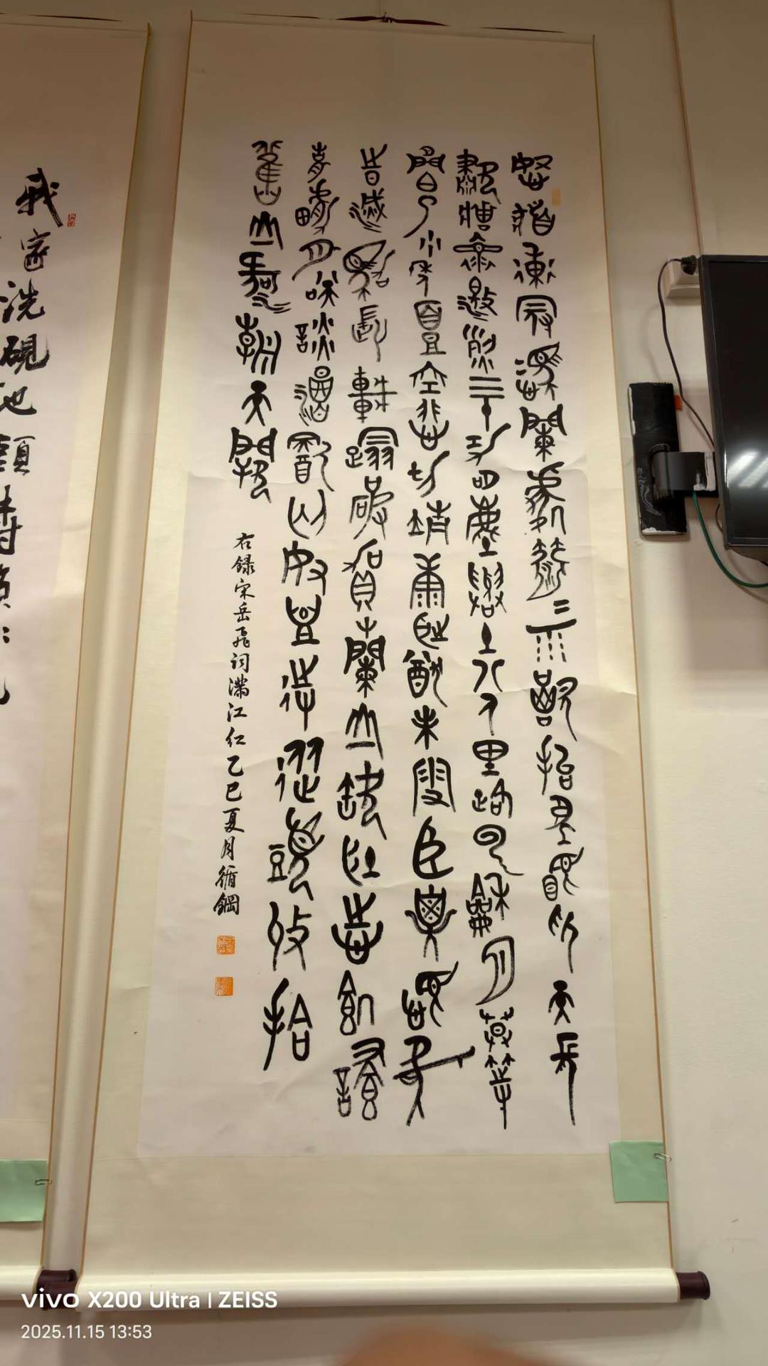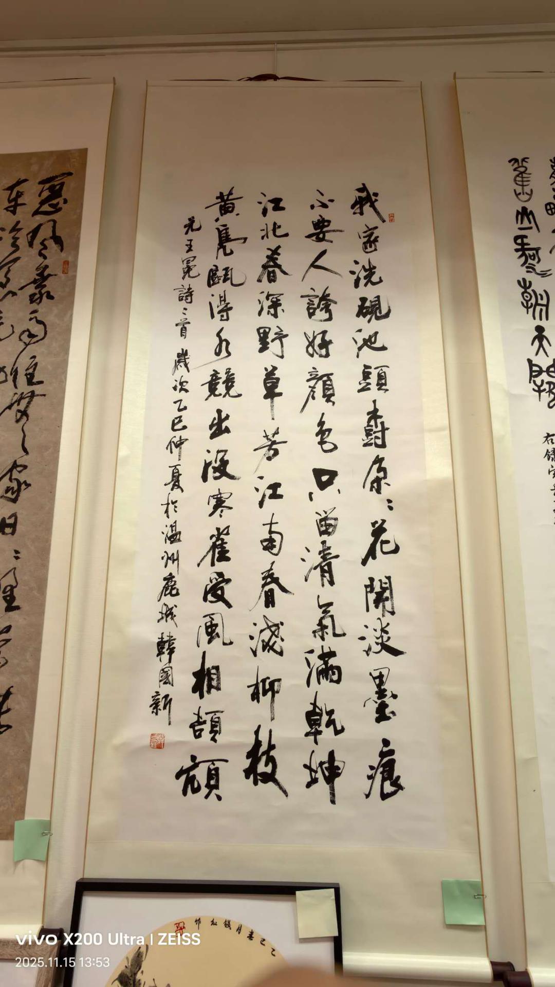 正文 2025年11月25日,在纪念中国人民抗日战争暨世界反法西斯战争胜利80周年书画交流展圆满落幕后,旅法侨界与中法艺术界朋友齐聚巴黎,共同庆贺温州城市大学青翰书画社执行社长徐锦雲带来的作品在本次展览中的精彩亮相,为中法文化交流再添浓墨重彩的一笔。 本次展览于11月15日在巴黎潮州会馆举行,来自法国、中国、西班牙、澳大利亚等国的百余位嘉宾出席,共同见证这场汇聚历史记忆与艺术精神的文化盛事。 在此次规模宏大的展览中,温州城市大学青翰书画社执行社长徐锦雲代表书画社携十幅作品赴法参展,其中包括87岁的老社员李日信、社长朱震旺等十位艺术家的欧楷及书画作品,全面展示了温州书画的艺术成就与文化底蕴。作品题材多元,涵盖篆书、行草、设色山水等形式,呈现出浙派笔墨清雅雄健、意境深远的艺术特色。