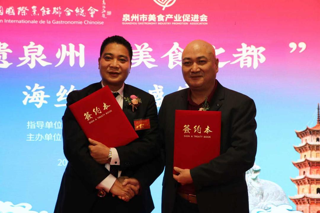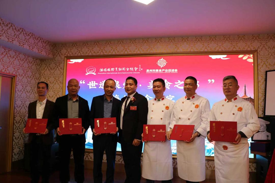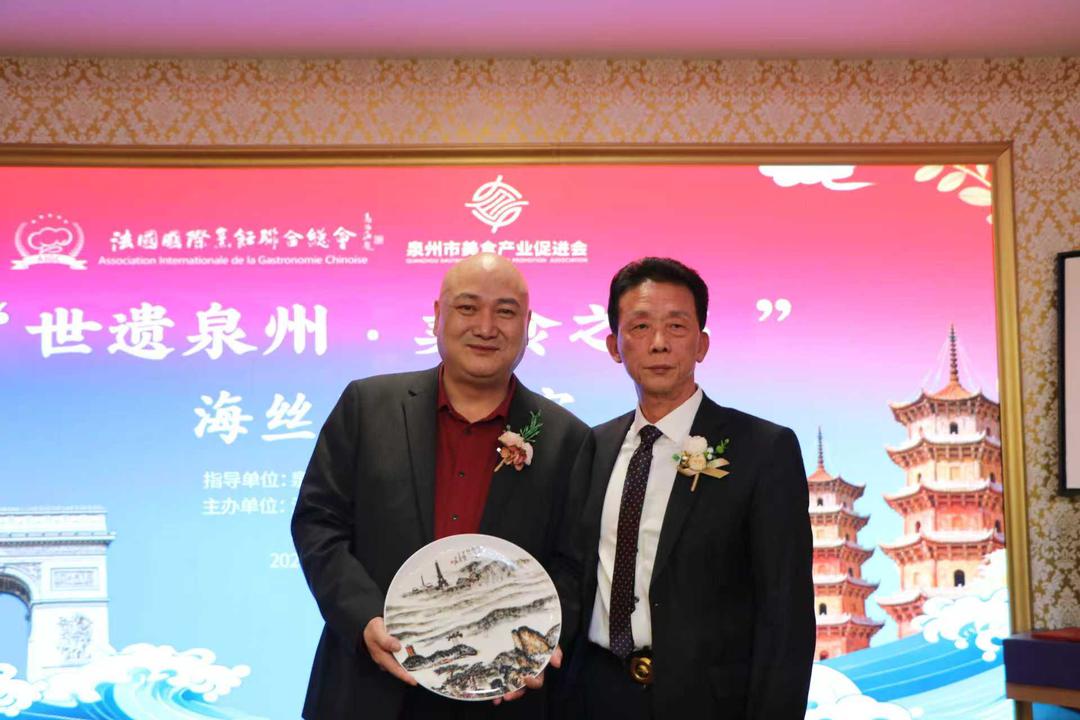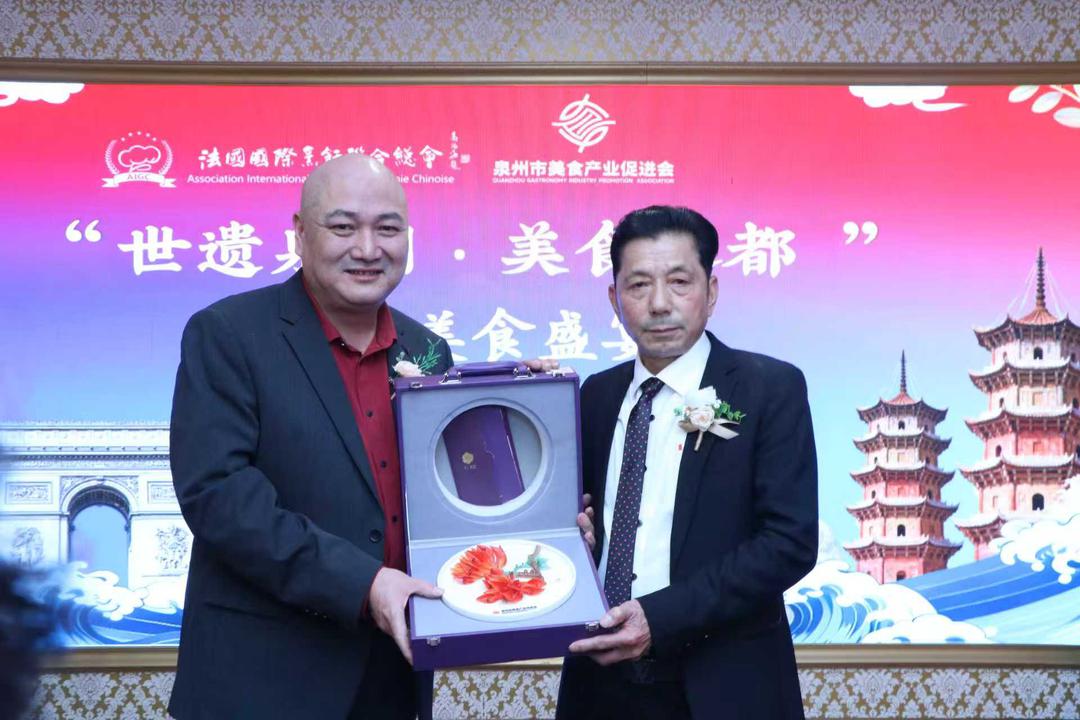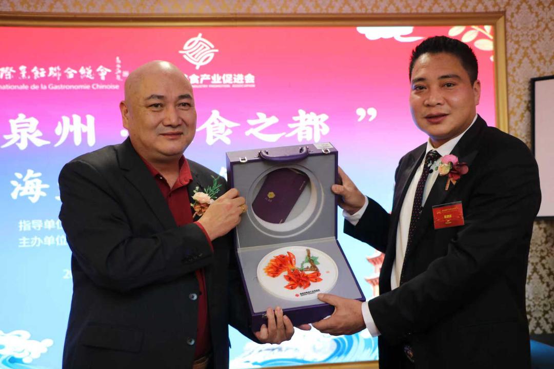活动期间,陈日星分别向王加清与陈建斌颁授“泉州美食全球推荐大使”证书。