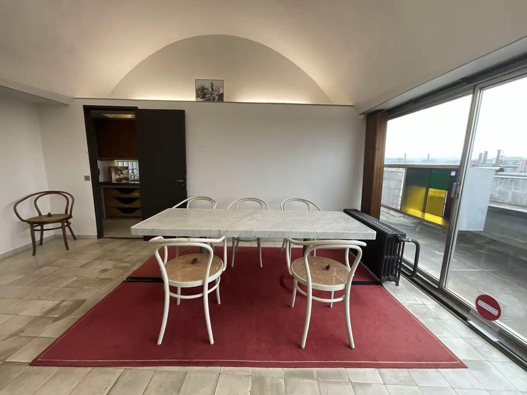 深度参访:走入大师真实的生活与创作空间 在勒·柯布西耶基金会特别安排下,法国华人旅游协会十余位精英导游走访了这处仅在周四至周六开放的公寓工作室。建筑以玻璃幕墙、自由平面、横向长窗、屋顶花园与底层架空完整呈现“新建筑五大要素”,是柯布西耶理论最彻底的实践。阳光倾泻入室、旋转大门划分动线、拱顶结构最大化空间,使住宅成为他所说的“居住的机器”。