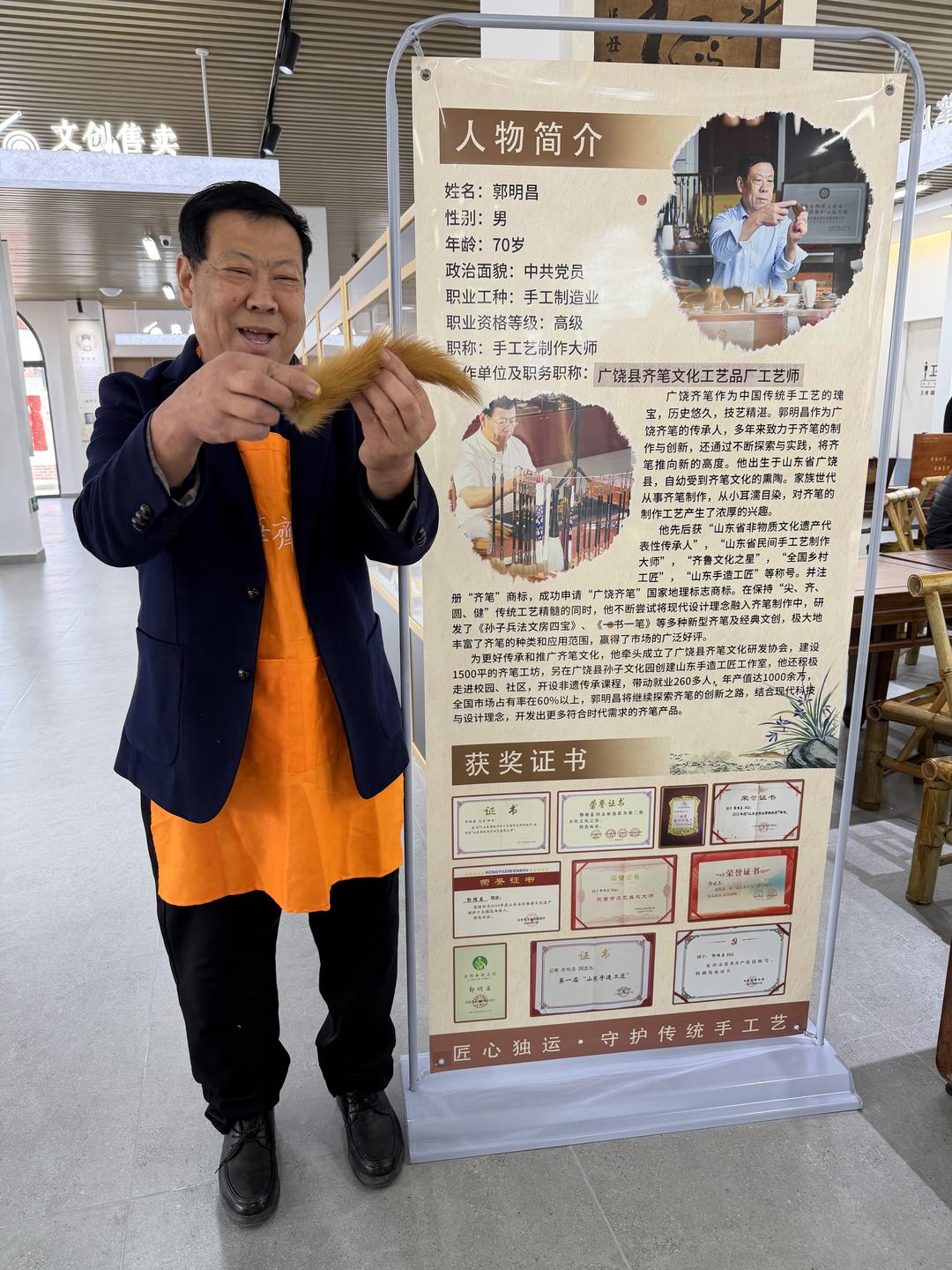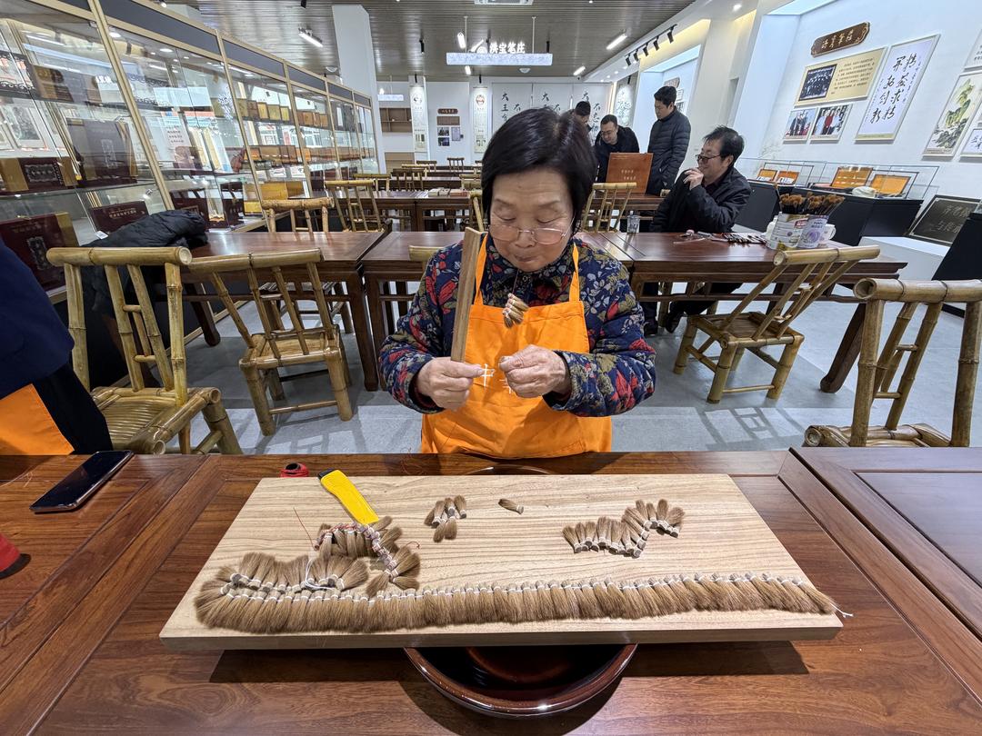 走进齐笔工坊,空气中弥漫着天然毛羽与松烟墨香,非遗传承人们正专注于每一道工序:从精选兔毫、羊毫等原料,到梳毛、齐毛、扎笔、修笔,每一个步骤都精益求精,尽显"千毛选一毫"的匠心。