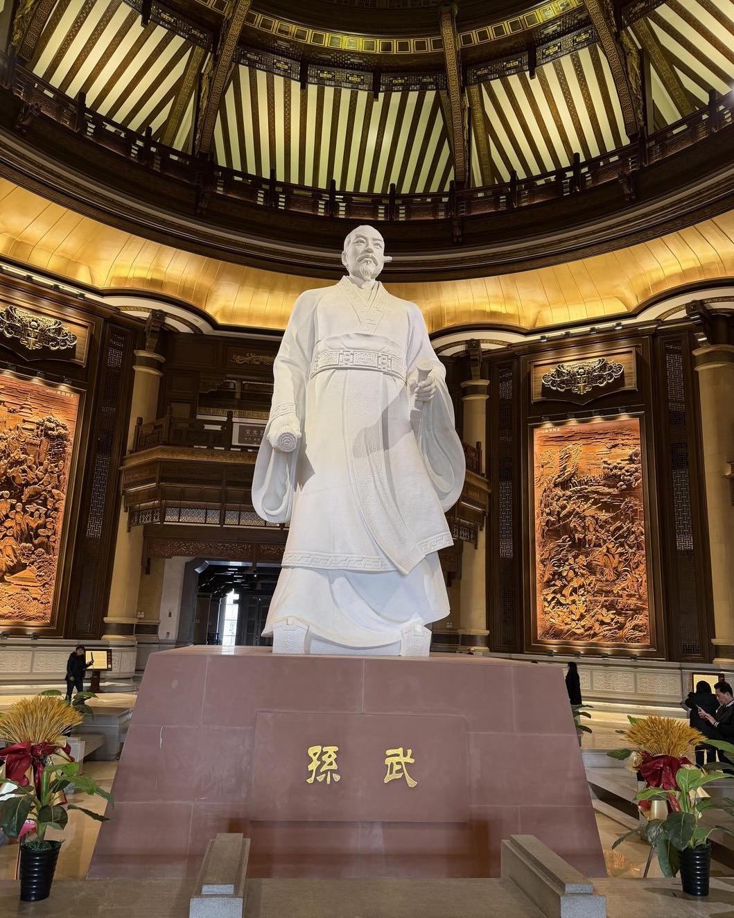 作为国家4A级旅游景区、中国华侨国际文化交流基地与山东省中小学生实践教育基地,孙子文化园以“一轴两带六分区”的科学布局,将休闲度假、观光旅游、商贸服务与科普教育完美融合。刚入园区,由13块巨石堆砌而成的“兵”字型大门便带来强烈视觉冲击,两侧击鼓景墙上“兵圣天下”与“风林火山”的刻绘,精准诠释着《孙子兵法》的核心精髓,瞬间将人带入春秋风云的意境之中。