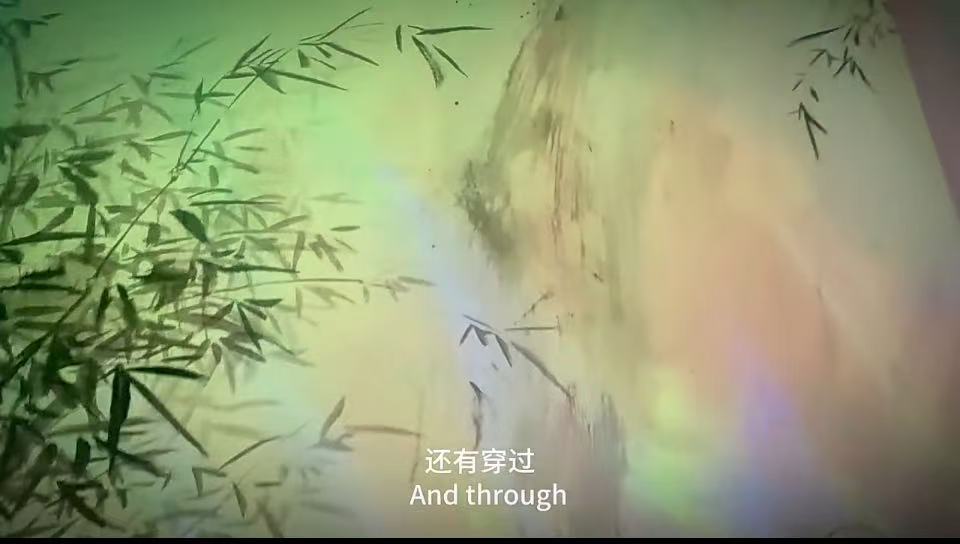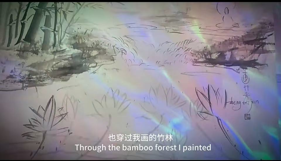 我在水墨之中发现了一束光(2025.12.12.) 它并不喧哗,却在画面里静静流淌,穿过莲花、竹林,也穿过日月的明暗与时间的呼吸。