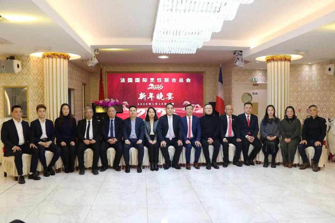 《法国华人头条》讯:(记者 志肖)2026年1月18日,法国国际烹饪联合总会在巴黎国际大酒店隆重举行新年晚宴。中国驻法国使馆领侨处一秘张慧舞、法国华侨 华人会常务主席郑金标等旅法侨界代表、烹饪联合总会骨干、会员等都参加了晚宴。