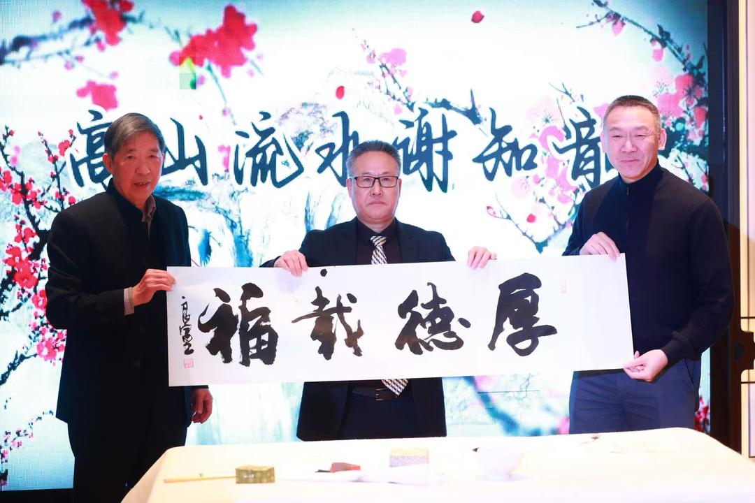 当晚,活动现场还呈现了多姿多彩的文艺节目。书画展示之余,嘉宾与艺术家们通过音乐、朗诵及即兴交流等多种形式,进一步丰富了活动内容,现场气氛温馨而热烈。艺术与情感在交流中交融,文化与友谊在互动中升华,使整场活动既有笔墨丹青的雅致,又充满人文关怀与节日温度。活动高潮处,周良富老师即兴挥毫,写下“厚德载物”四个大字,寓意深远,赢得现场阵阵掌声,也为“高山流水·谢知音”这一主题画上了圆满而动人的句号。