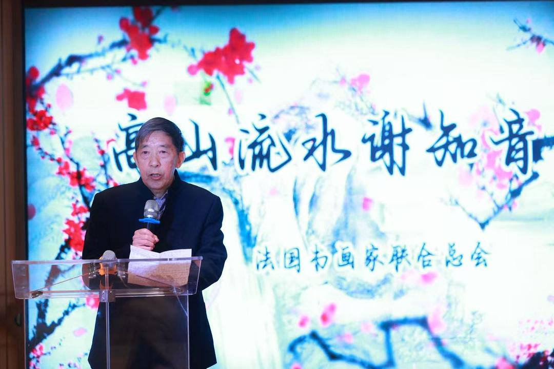 他代表联合总会全体同仁,向长期以来关心和支持书画事业发展的各界朋友表示诚挚感谢。留冠言表示,联合总会始终秉持“以古为徒、师法自然、修心立艺、以善为本”的理念,踏实做人、认真做事,让中华文化在异国他乡不断扎根、生长、开花。 他介绍,多年来,联合总会积极走进法国中小学,示范中国书法艺术,讲述汉字的结构之美与文化内涵,最远曾赴外省拥有三千多名学生的综合中学开展交流活动,为当地中文教育与中国传统艺术注入生动活力。同时,在巴黎美食节、春节等大型公共文化活动中,书画家们现场挥毫泼墨,书写汉字、春联与“福”字,让墨香与节庆的烟火气交织,在巴黎街头留下独特的东方印记。 留冠言表示,联合总会还先后举办多场大型书画交流展,参展作品来自中法及多个国家,形成多元对话、相互欣赏的艺术格局。“中国有句老话,人在做,天在看;种善因,结善果。我们愿以艺术为桥,为社会多做实事。”他特别感谢中国驻法使馆领侨处以及中法友好团体、侨界组织、企业和个人的长期支持,并向持续关注书画事业的媒体表达敬意。 随后,法国华侨华人会主席蔡君柱致辞。 他代表旅法侨界,向法国书画家联合总会及留冠言会长致以新春祝福。他表示,“高山流水·谢知音”活动不仅是一场文化雅集,更是一场以艺术为语言、以情感为纽带的中法文化交流盛会。书画艺术跨越语言和国界,让法国社会更加直观、深刻地感知中华文化所蕴含的精神气质与审美追求。 蔡君柱高度评价法国书画家联合总会在团结侨界、传播中华文化方面发挥的重要作用,认为其已成为旅法华人文化领域一张亮丽名片,为中法民间交流搭建了稳定而富有温度的平台。 中国驻法使馆领侨处张慧舞一秘代表使馆致辞。她表示,很高兴出席“高山流水·谢知音”活动。书画艺术是中华优秀传统文化的瑰宝,从工笔重彩到写意水墨,始终以深邃的意境和精妙的笔墨滋养着人们的心灵。法国书画家联合总会长期致力于团结书画爱好者、推动创作研究,其发展凝聚了在座每一位的热情投入与无私奉献。 她希望联合总会在新的一年里,继续坚守艺术初心,从中华美学精神中汲取营养,创作更多思想性与艺术性兼备的优秀作品,同时搭建更开放、多元的交流平台,推动不同风格、不同流派之间的对话互鉴。 活动在温馨而富有诗意的氛围中圆满举行。