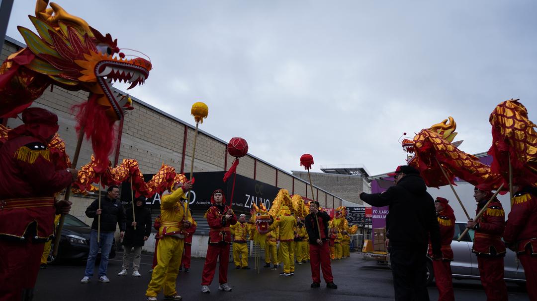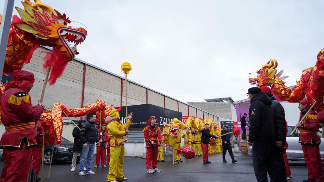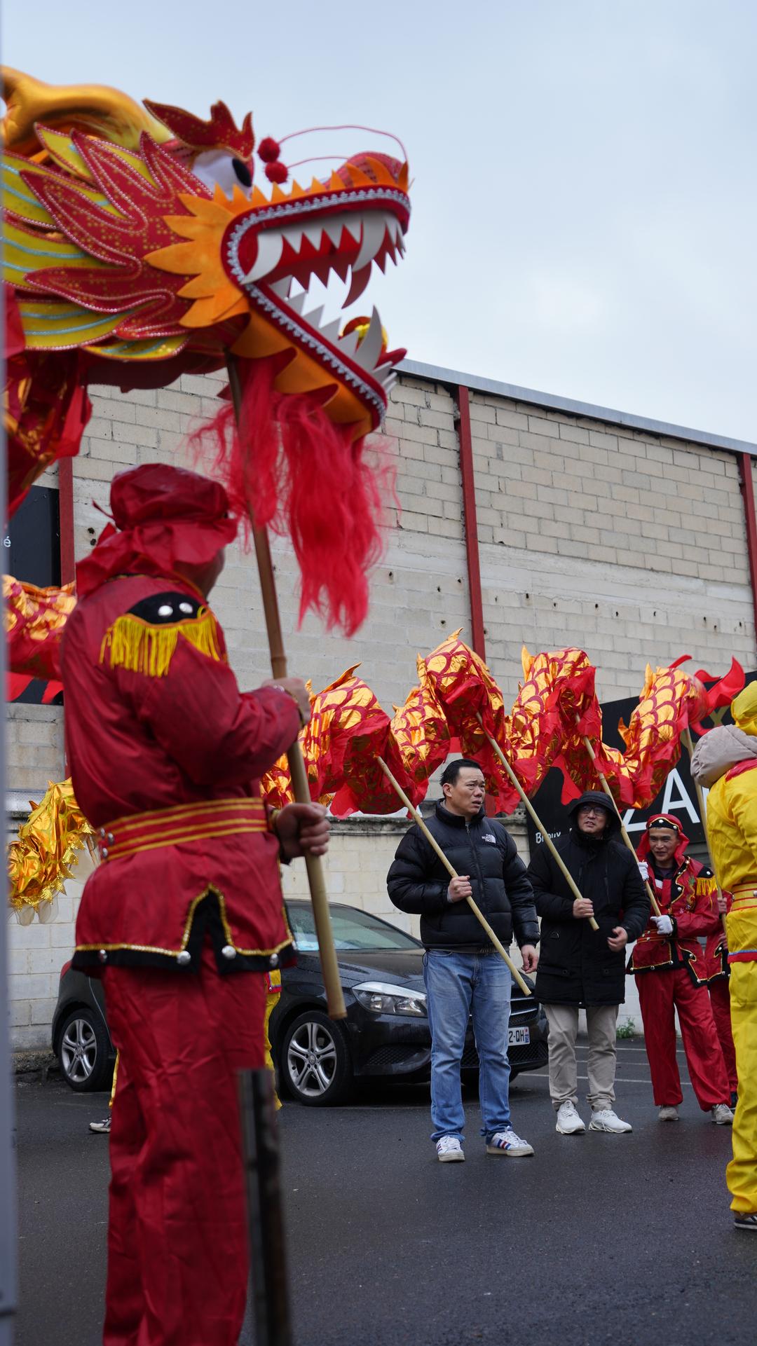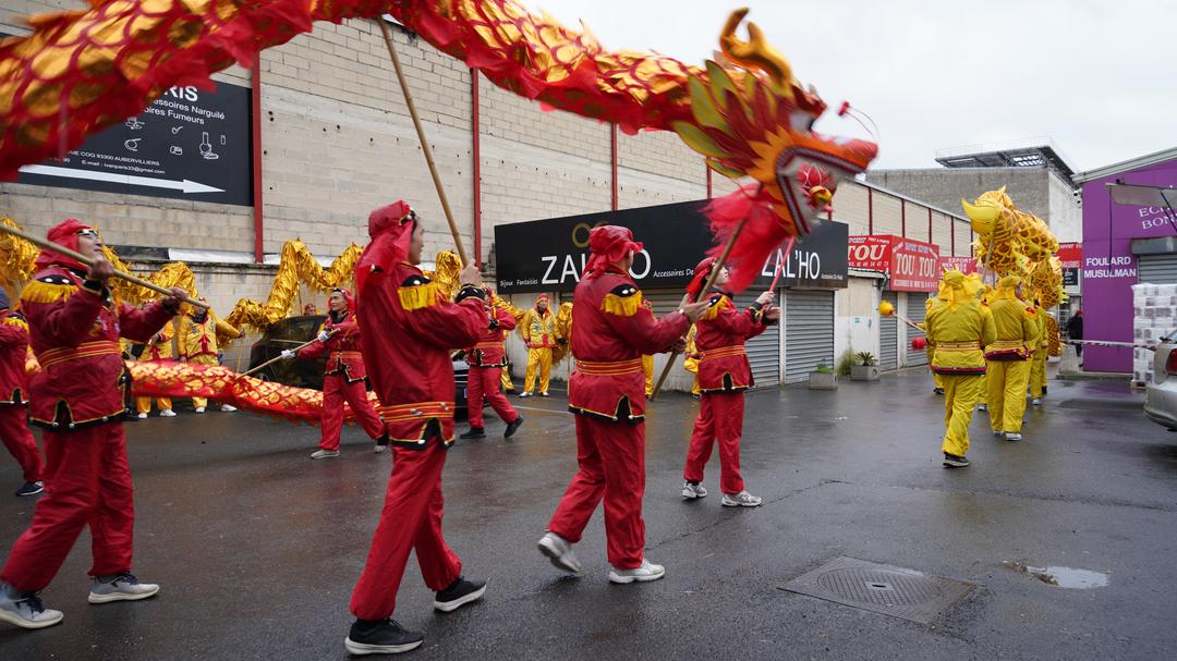 当天,法国华人贸易促进会会长林相伟、法国福建莆田同乡会会长林清组织并带领参加游行的舞龙队伍,在雨中进行集中训练,为即将到来的新春盛会做好充分准备。