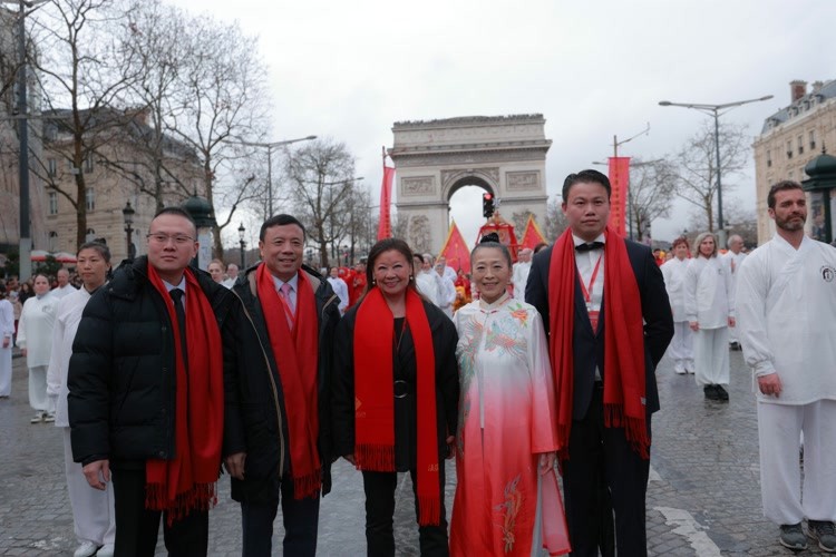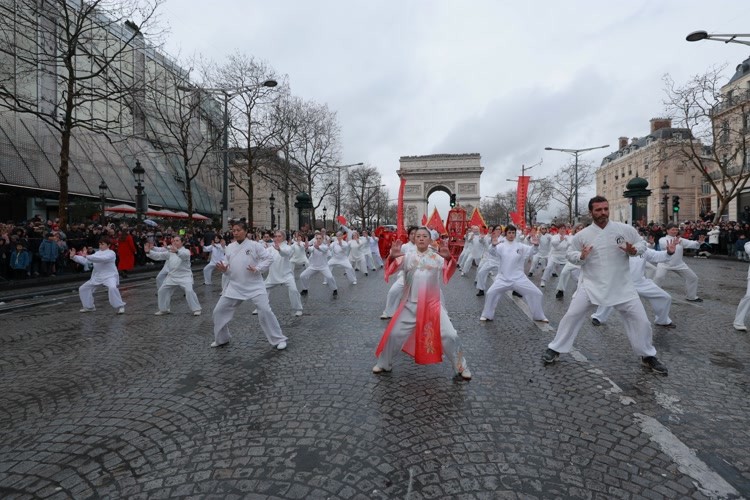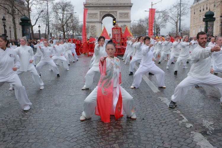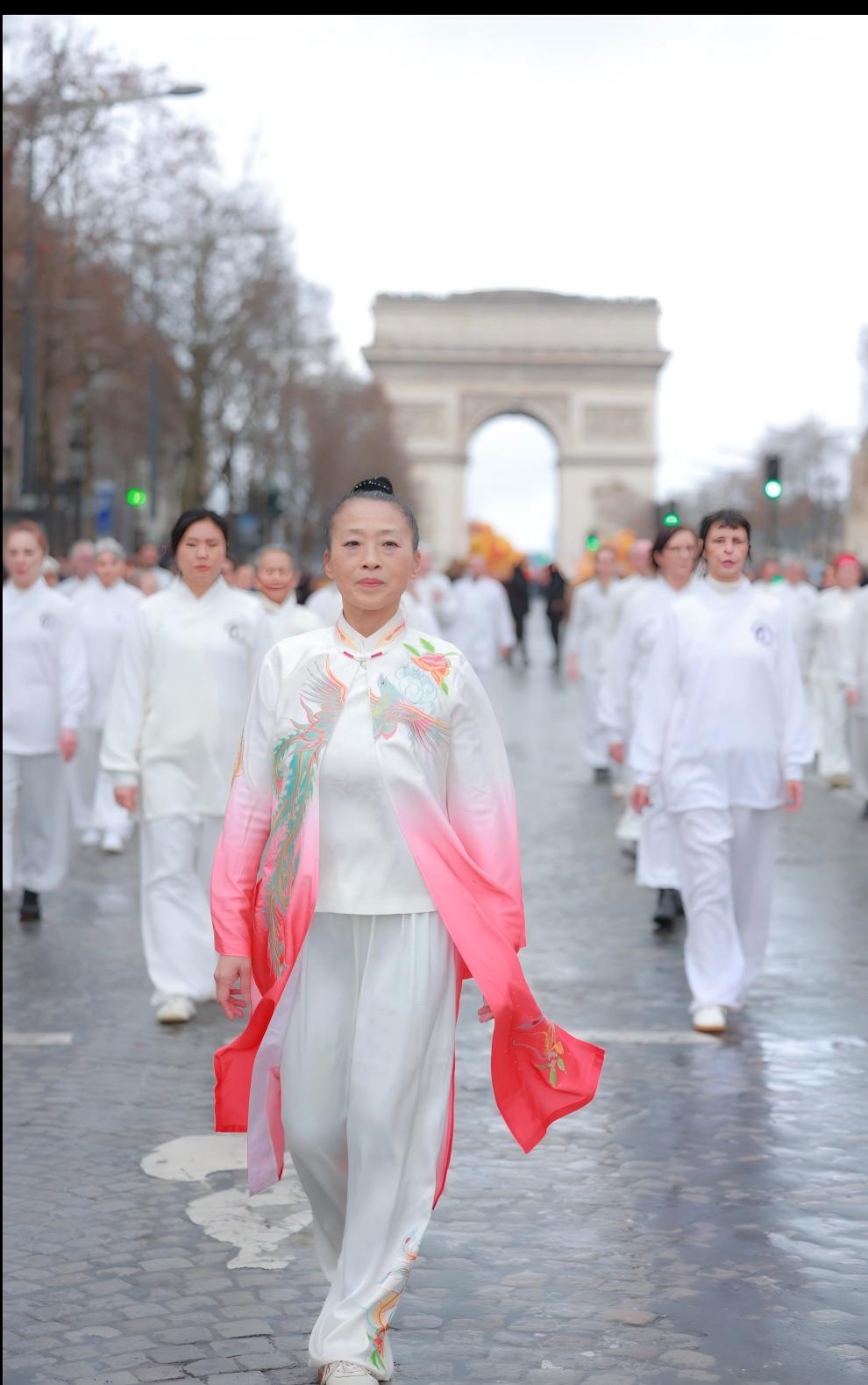 这位中国女性,正是法国东方文化传播中心 Les Temps du Corps创始人柯文。在她的带领下,她的学员方阵,作为第四届“欢乐春节满巴黎·龙狮贺岁舞香街”春节巡游的重要组成部分,在被誉为“世界最美大道”的香榭丽舍大街隆重亮相。