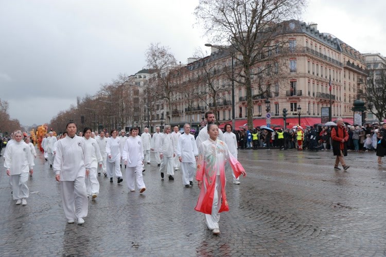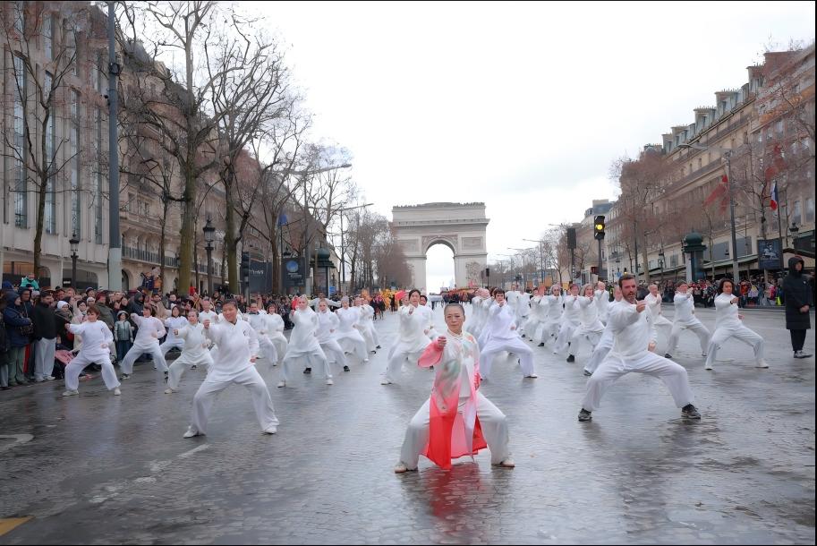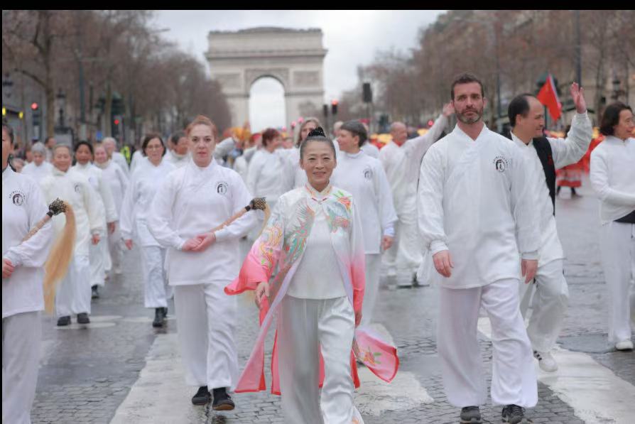 巡游现场,记者对柯文老师进行了专访。 记者:当天天气并不理想,但团队表现非常稳定,您此刻的感受如何? 柯文:今天我特别感动。出发前我就告诉学生,我们知道会下雨,但只要大家团结一致、能量在一起,无论在雨中还是风中,都要共同前行。这正是中国文化“天人合一”的体现。中国武术、太极和气功所强调的,正是接纳外界的不完美,同时修炼好自身的状态。 记者:这次参与巡游的成员来自不同地区? 柯文:是的,很多学员从法国南部、西部、马赛、法国中部,甚至从其他国家赶来。我反复强调,我们不是来做表演,而是来呈现一种状态——一种通过太极、健身气功和武术所体现的、关乎人类健康与和平的精神。这也是春节在世界舞台上的真正意义。 记者:跨地区团队是如何完成高质量呈现的? 柯文:这次编排要求内容简洁却高度凝练。我们采用线上与线下同步排练的方式,我还多次向学员发送示范视频,反复强调集体步伐、整体气息和精神统一。正是这种长期训练与共同修炼,才让今天的呈现达到“合一”的状态。 记者:您希望通过这次香榭丽舍大街的巡游,向世界传递怎样的信息? 柯文:这些年来我越来越深切地感受到,中国文化已经真正走入法国主流社会。参与其中的,有艺术家、大学教授、企业高管,也有警察和消防人员。中国春节正在成为人类共同分享的节日,而中国文化本身,是全人类共同的财富。 这正是法国东方文化传播中心三十多年来始终坚持的道路——推动中国文化的国际化传播,以文化促进理解,以修炼身心促进和平。这是一项我们已经践行三十多年的事业,也将继续走下去…… 细雨中的香街,东方精神从容前行。柯文及其团队以沉稳而坚定的步伐,再次书写了中国文化在巴黎、在世界舞台上的生动篇章…… |