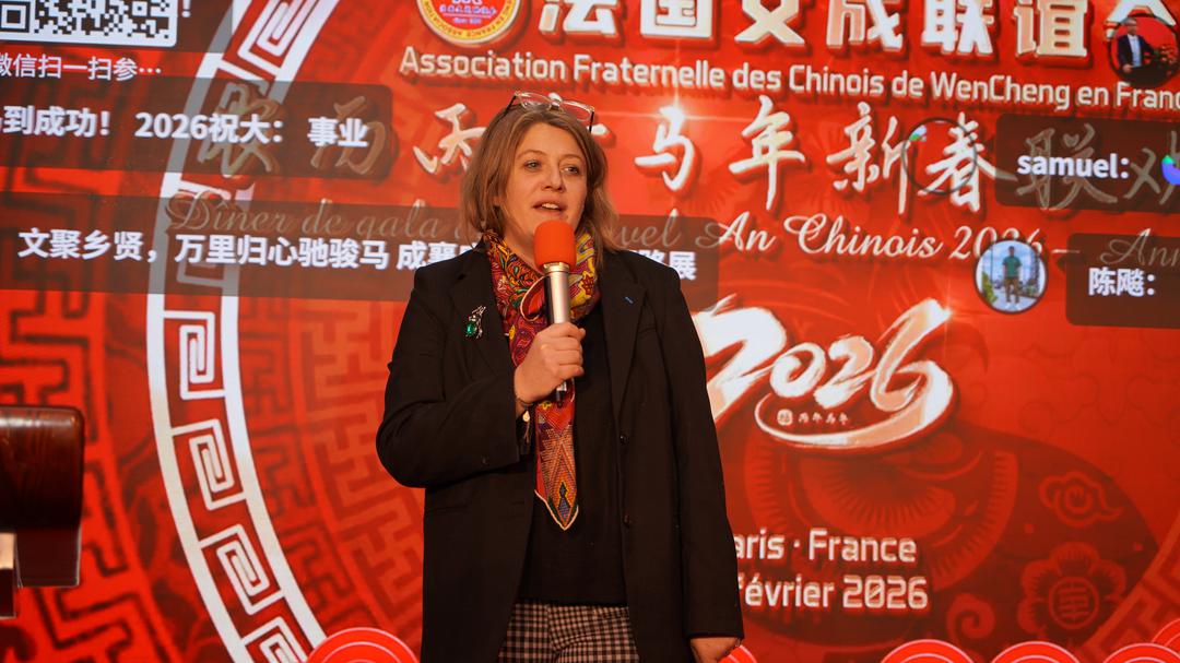 欧拜赫维利耶市市长弗朗克莱在致辞中向全体来宾致以诚挚的新春问候。她表示,多年来欧拜赫维利耶市与法国文成联谊会携手合作,共同举办春节庆祝活动,已成为当地一年一度的重要传统。她同时邀请在场嘉宾于2月18日前往欧拜赫维利耶市,共同参与当地春节庆典活动,让喜庆氛围持续升温。