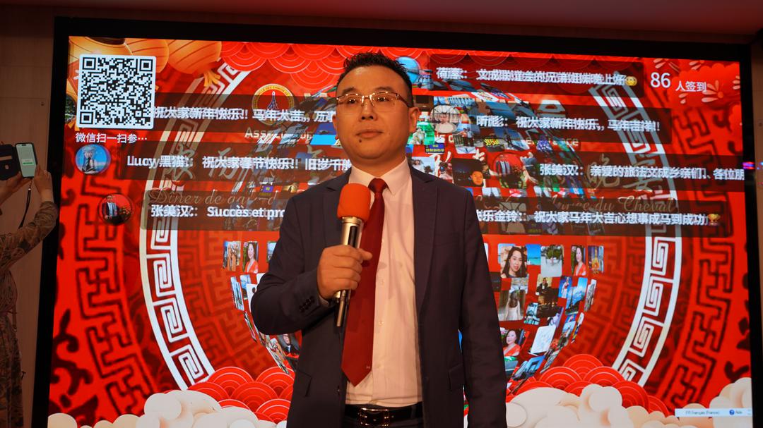 在欢快喜庆的氛围中,与会嘉宾互致新春祝福,共祝“马到成功”。晚宴期间还设置了多轮抽奖和趣味比赛,奖品包括机票、红包、瓷器、家用电器及电子设备等。高质量奖品与创新的线上抽奖形式赢得现场阵阵掌声,将气氛不断推向高潮。 整场晚宴由法国文成联谊会秘书长张美汉主持。