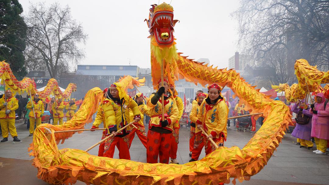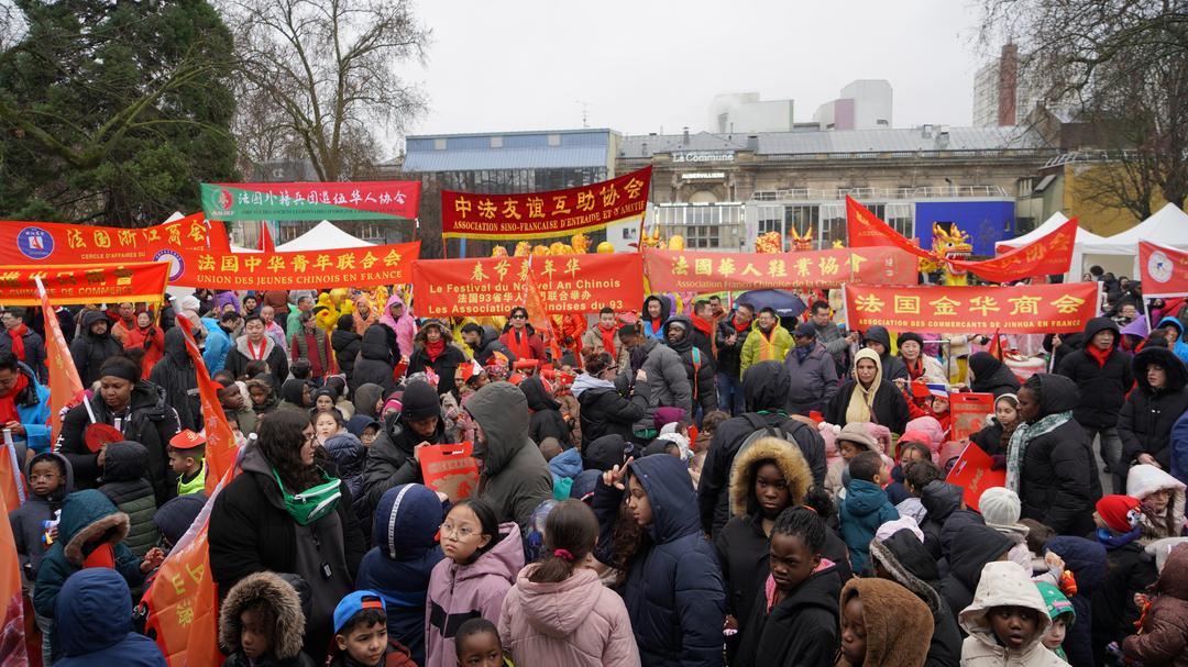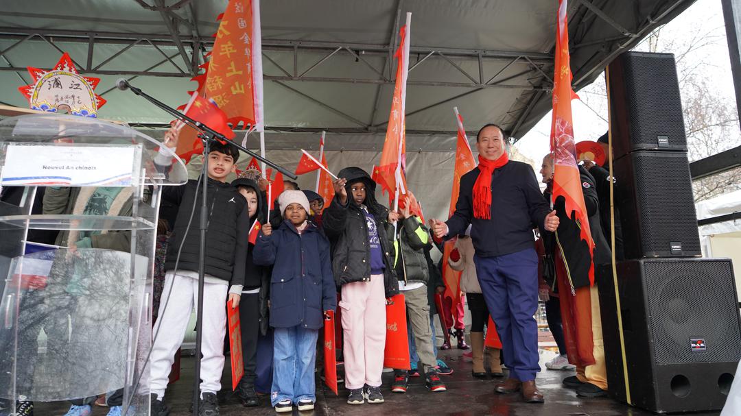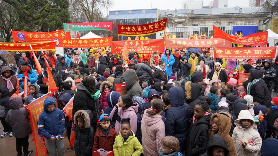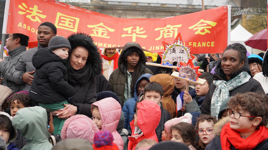 尽管当天细雨霏霏,空气中带着初春的微凉,却丝毫没有影响现场的热情。上百位法国小学生在老师的带领下专程赶来观看舞龙舞狮表演。孩子们挥舞着手中的中法两国国旗,随着鼓点节奏欢呼雀跃,清脆的笑声与锣鼓声交织在一起,为雨中的街道增添了勃勃生机。