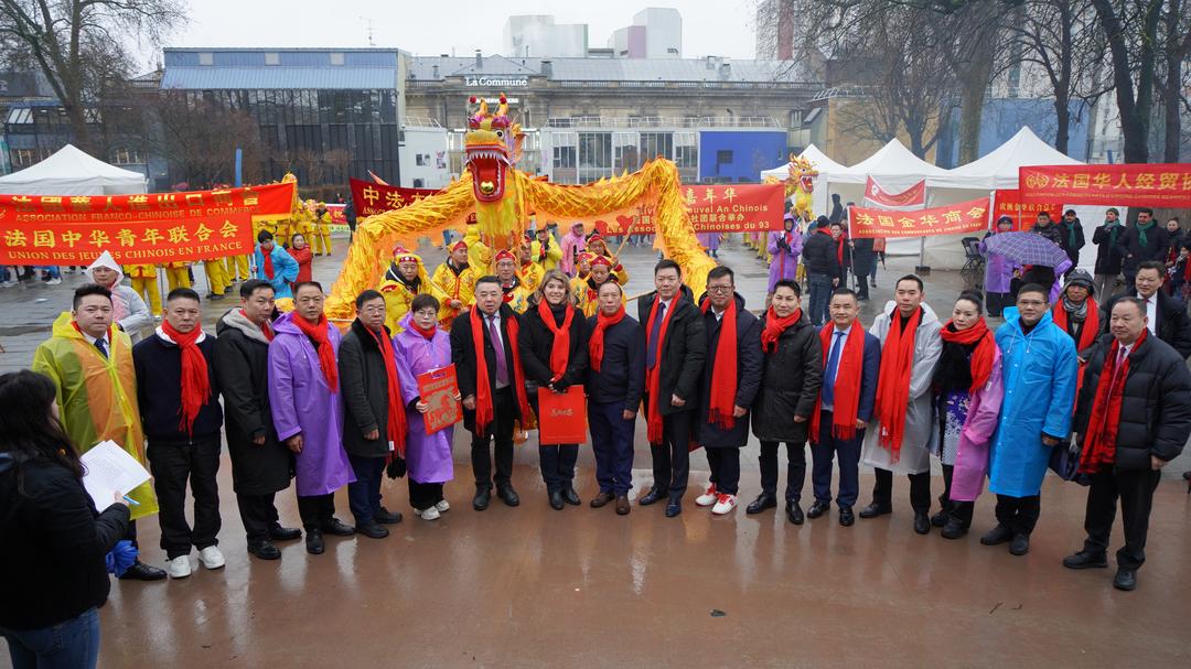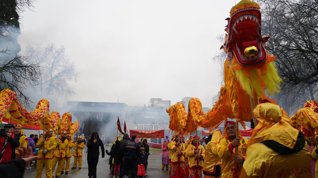 活动尾声,10多家华人协会成员引领两条金龙沿欧市主干道巡游,向华商批发商城进发,沿途向商家拜年送福。许多法华民众纷纷举起手机记录这一欢乐时刻,金龙翻腾、锣鼓喧天,为雨中的城市写下热闹而难忘的新春篇章。