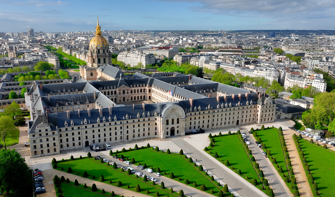 巴黎榮軍院 原來法王路易十四除了打造凡爾賽宮之外,也興建了榮軍院(Hotel des Invalides),全名「榮譽軍人院」,又被譯為傷兵院。 榮軍院位於巴黎市中心第7區塞納河畔,正對著華麗的「亞歷山大三世橋」,對岸就是大小皇宮。 榮軍院在1671年開始建造,是第一座用來治療及安置無家可歸的退伍軍人及殘疾軍人的醫院。 現今人們見到在榮軍院的南面入口處,有一座法國17世紀建築風格的大型華麗鍍金圓頂,下面是在1677年增建的「路易教堂」。 拿破崙被放逐去世19年之後,法王路易菲力將拿破崙與其他元帥將領的遺體迎回,安葬在教堂中。 榮軍院是一座龐大的建築群,而今成為法國軍事博物館的一部份。 儘管凡賽爾宮聲名遠播,太陽王路易十四 (1638-1715) 在遺囑中寫道:「在我統治期間所有興建的建築中,沒有一所能及得上皇家榮軍院對國家更重要。」 事實上,在路易十四之前,因年老無法繼續服役,或因參與作戰而受傷或生病的士兵境遇悲慘。 由於沒有經濟來源,他們只能淪為乞丐或遊民。有的士兵由修道院收留,但士兵們難以適應僧侶長期寂靜及禱告的生活。 在亨利四世及路易十三時代,曾設立收留照顧退役老兵的機構,但都沒有持續很長時間。 直到了路易十四時代,他希望可以改善士兵的生活。一方面彰顯天主教的慈善精神,一方面為了讓從軍更有吸引力,以招募更多士兵。於是他下令興建一座永久機構,以收留及照顧士兵,並提供財政上的支援。 榮軍院的工程,始於1671年,1706年完工,持續了三十年。最初,工程進度驚人,施工三年後即1674年,第一批的士兵就入住榮軍院。 榮軍院保育良好,至今仍有不少國家元首級接見儀式、紅白事,及音樂節日慶祝會在此間的大型廣場上舉行。