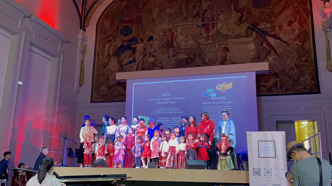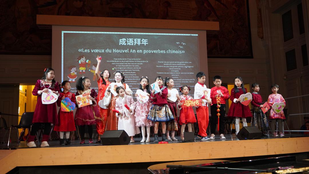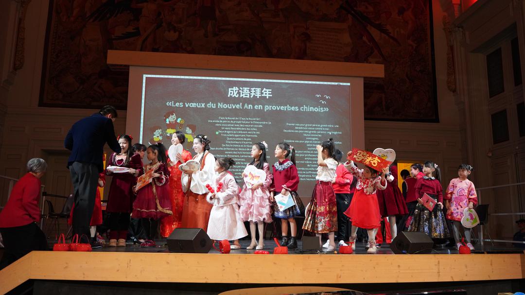 整场联欢会充满童真与温情。孩子们的歌声点亮了巴黎的夜晚,也让这个春节在异国他乡显得格外热闹而动人。