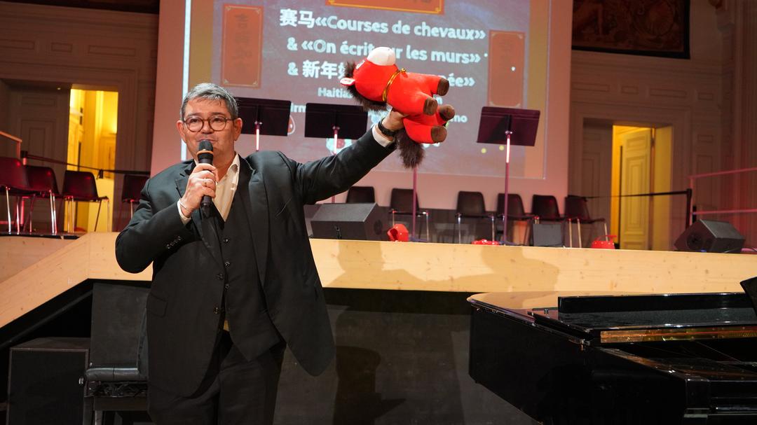 演出间隙,顾梅区长手举着红马登台致辞,对当晚节目给予高度赞赏。他表示,孩子们的精彩表现令人感动,不仅展现了中华文化的深厚底蕴,也体现了多元文化在巴黎13区的融合与活力。他特别肯定了Yu空间为社区家庭搭建交流平台所作出的努力,认为这样的活动让春节在巴黎焕发出更加温暖而生动的色彩。