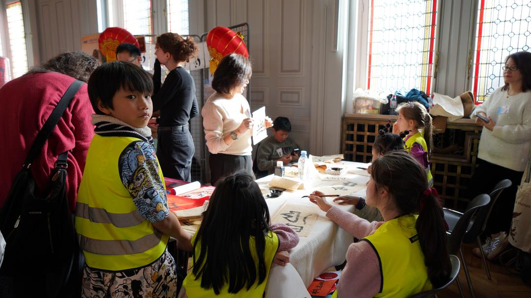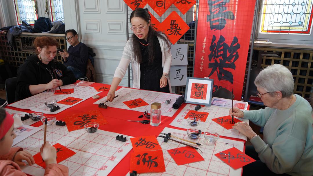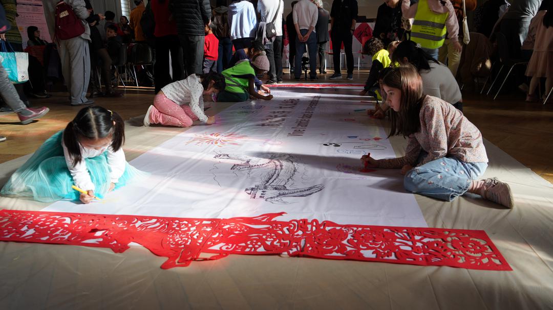 本届汉字节内容丰富、形式多样。协会围绕马年春节主题设置展览,并开设书法体验、汉字入门课堂、剪字工坊等互动项目,多家从事中法文化交流的机构和企业参与其中,为公众提供多元化的汉字与中国传统文化体验。成人与儿童纷纷提笔挥毫、动手剪纸、现场绘画,在沉浸式互动中体会汉字之美。由于活动适逢周三下午,巴黎13区多所学校组织学生前来参与,使现场气氛更加热烈。