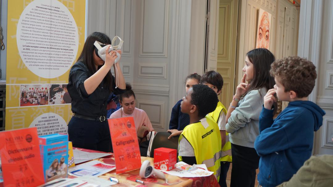 孔子学院也精心设置专柜,将麻将体验与“趣味汉字”学习巧妙结合,在轻松愉快的氛围中传播中文与中华文化,吸引不少法国青少年驻足参与。