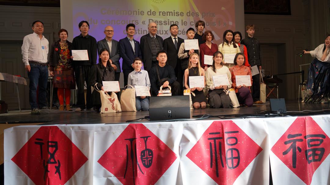 活动期间,白乐桑、周家贵、陈家辉、闭德世等嘉宾共同为汉字画比赛获奖选手颁奖。闭德世介绍,一、二等奖获得者将于今年下半年赴中国学习与体验。活动现场气氛尤为热烈,多个特色展区交相辉映。来自北京的“汉字嘉年华”首次亮相巴黎汉字节,色彩鲜明、互动感十足的展台前人头攒动,参与者在趣味游戏与创意体验中感受汉字结构之美与文化内涵。