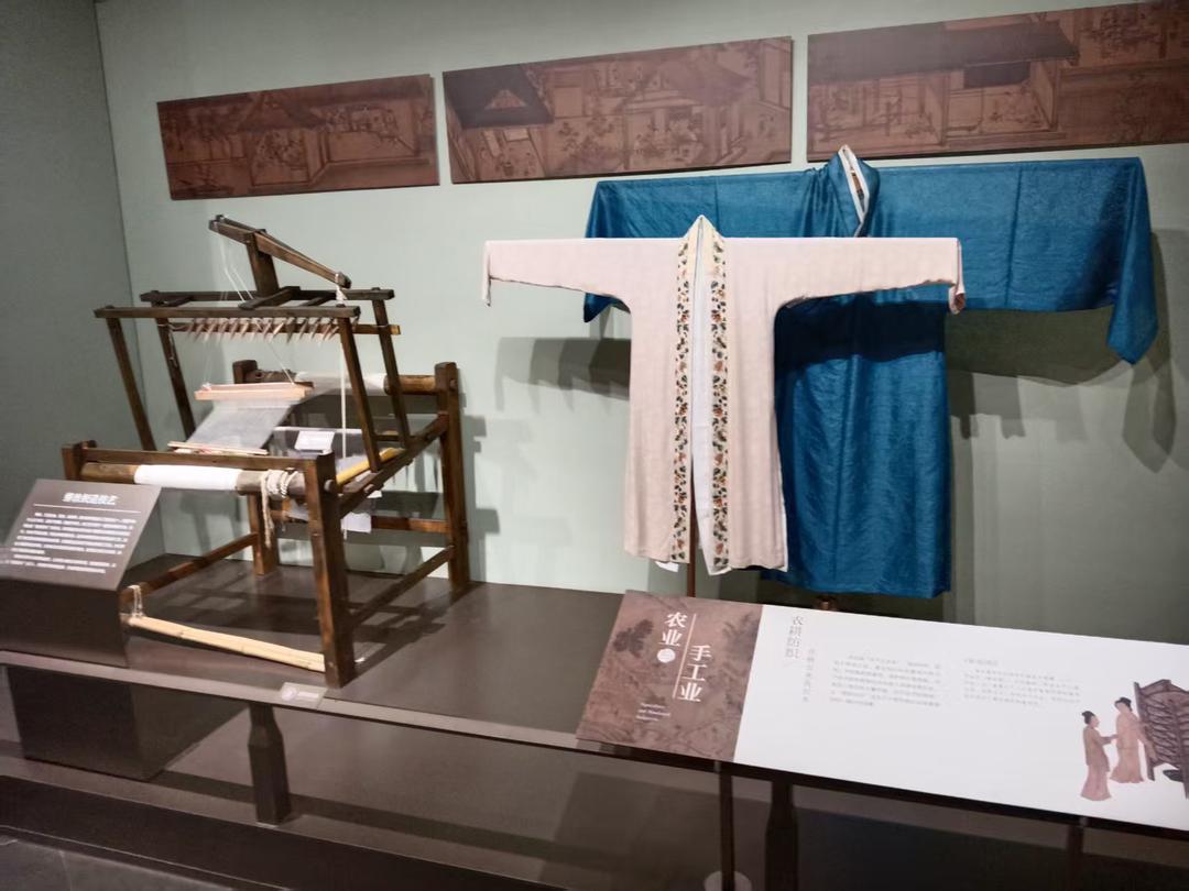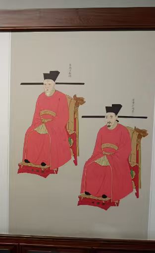大殿内分别有博古区、茶饮区、礼仪区、插画区。左边墙上有高宗和孝宗坐姿画像,二人身穿红色长袍,头戴官帽,看上去很朴素。听讲解员介绍,此画真迹在台北故宫博物馆。高宗和孝宗两位皇帝不穿华丽富贵的衣服是真的,比较简洁和亲民。而且两位还是书法艺术家,有好多传世作品,德寿宫、重华宫等匾额均为赵眘自己书写。结束重华宫游览后,乘坐电梯转到地下南宋历史文化陈列专题展区。大家不要忘记摸一摸宫殿的非洲柚木立柱,大胆摸,没有使用一滴油漆,拳头打也行,只要您手不疼,沾沾大宋皇帝的福气。 赵眘即位后,对岳飞等将领给予平反昭雪。他对南宋经济发展具有重大贡献,史称“乾淳之治”。大家有空可以去看看出土文物,以及当时的农耕纺织业、造船航海业、造纸印刷术以及人文历史。