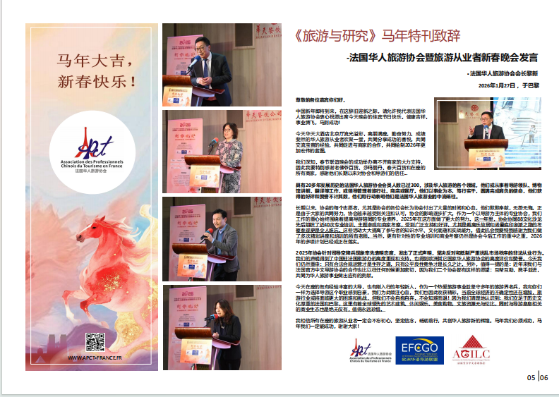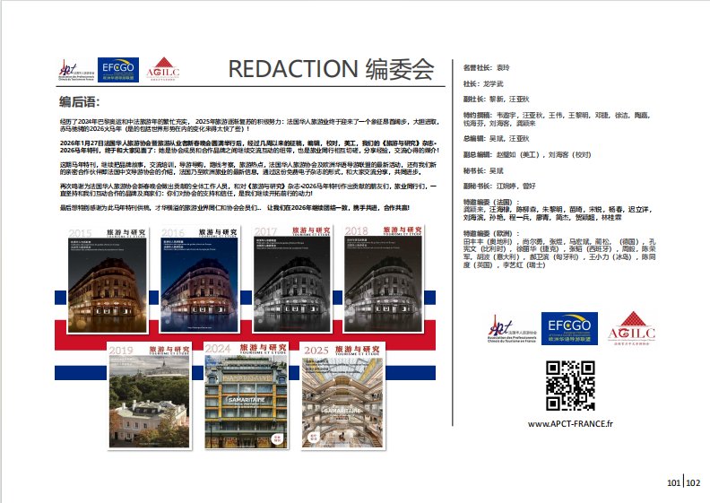 《法国侨报》讯:由法国华人旅游协会、欧洲华语导游联盟、法国中文导游协会联合出版的《2026旅游与研究》面世啦……
