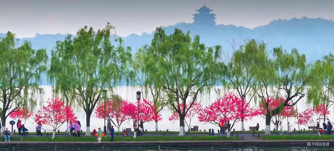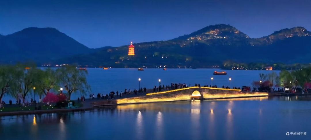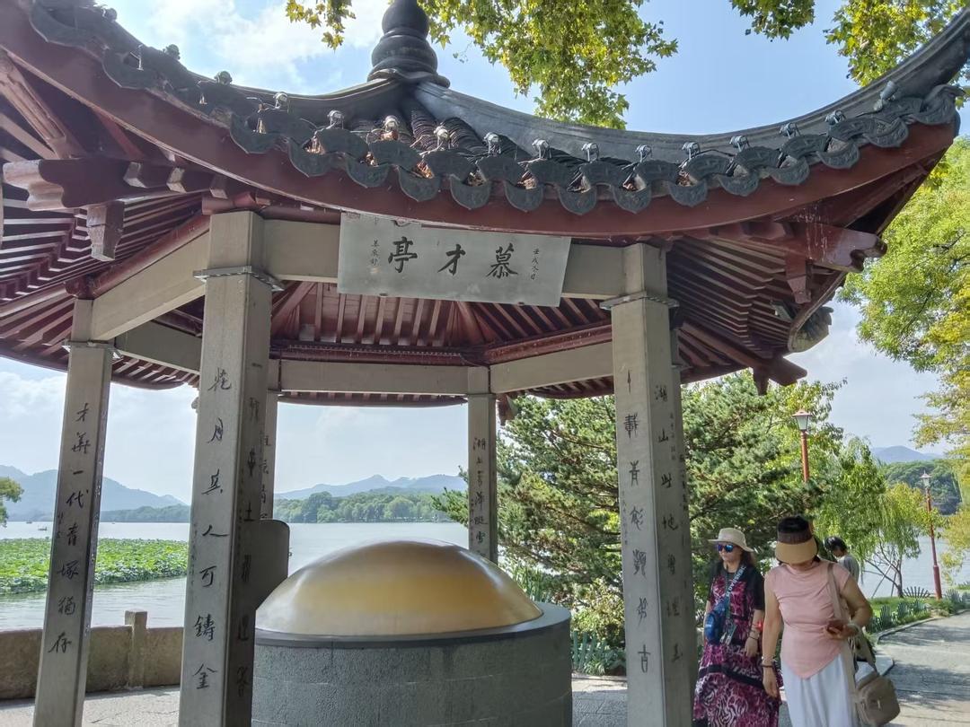 这座桥、这座亭、这座墓,早已超越了故事本身,成为了西湖人文景观中一个独特的符号。它见证了人们对美丽、才情和自由爱情的永恒向往,也让西泠桥与断桥、长桥并称为“西湖三大情人桥”。 跨越西泠桥来到孤山路西湖最美拐角处,可以坐在西湖边椅子上休息,椅子不多,没地方坐,可直接坐在西湖边堤岸上,双脚自然下垂,还可以触碰到湖水,赤脚触碰更好玩,更有意境。 孤山路有好多人文景点:著名的中国第一名社“西泠印社”。楼外楼餐馆,有一道名菜“西湖醋鱼”颇有争议。孤山公园的“西湖天下景”亭楹联“水水山山处处明明秀秀,晴晴雨雨时时好好奇奇”,有12种读法,每种读法都别有韵味。 坐落在西湖边的浙江博物馆里,有三件国宝级文物,第一件是雷峰塔出土的纯银鎏金阿育王塔(塔中心存有佛主舍利)。第二件是良渚遗址出土的“玉琮”,历史相当悠久,五千年。(杭州良渚遗址也是世界遗产)。第三件是富春山居图(半幅),另半幅在台北故宫博物院。均为镇馆之宝。出馆后,来到“平湖秋月”景区,中秋佳节,约上三五好友在此叙旧、喝茶、赏月是不错的地方。 白堤绝胜:“平湖秋月”“断桥残雪”之间有段长堤,堤上有两座名桥,分别叫锦带桥和断桥,长堤上桃树、柳枝排列整齐,风景堪绝,在长堤上行走,可体会到桥与堤的完美结合,如诗如画、心旷神怡。