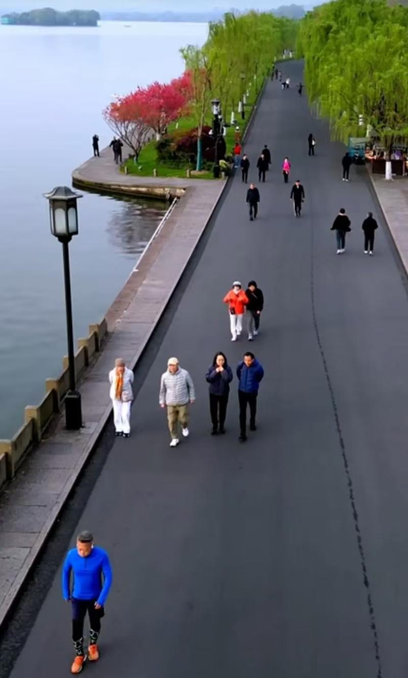 出地铁后,从“胡羊尾巴”处,开始登山,拾级而上,台阶两边竹林茂密,一不小心就能踩到了笋尖,增加不少登山野趣。20分钟后登顶初阳台,初阳台可看日出,有“初阳朝暾”牌坊,阴雨天往西可观“双峰插云”景色。 沿预定下山路线,一路有抱朴道院、蛤蟆峰、川正洞、保俶塔、玛瑙寺等名胜古迹,穿过“又入佳境”亭,进入北山街。 北山街是一条靠山邻湖的马路,街旁大部分是精致的民国时期建筑,整条街被定为“北街梦寻”景区,全年风景宜人,边走边看,每个方向看西湖都很漂亮,百走不厌,让人流连忘返,坐在湖边椅子上发呆,也很享受。