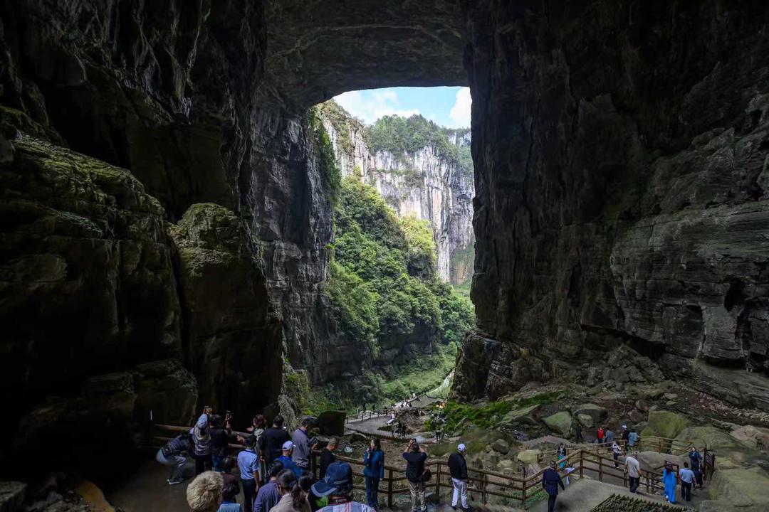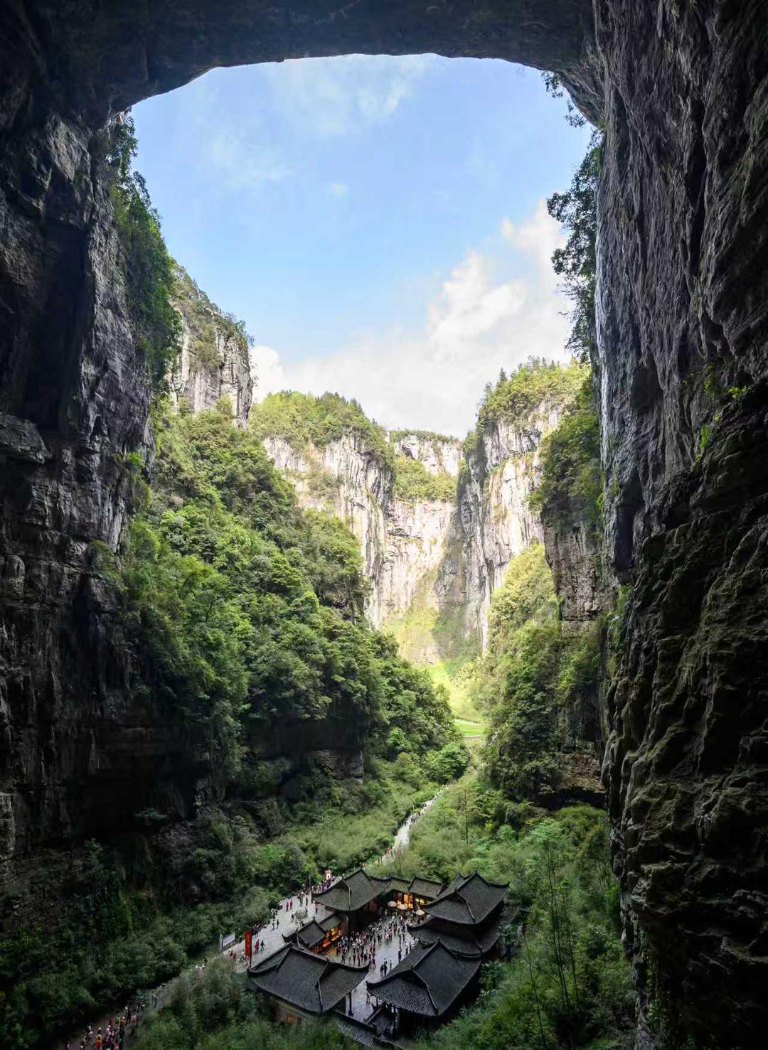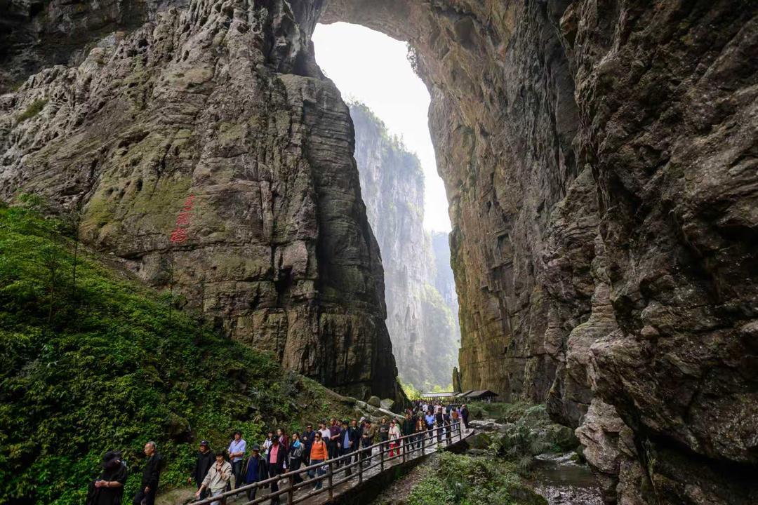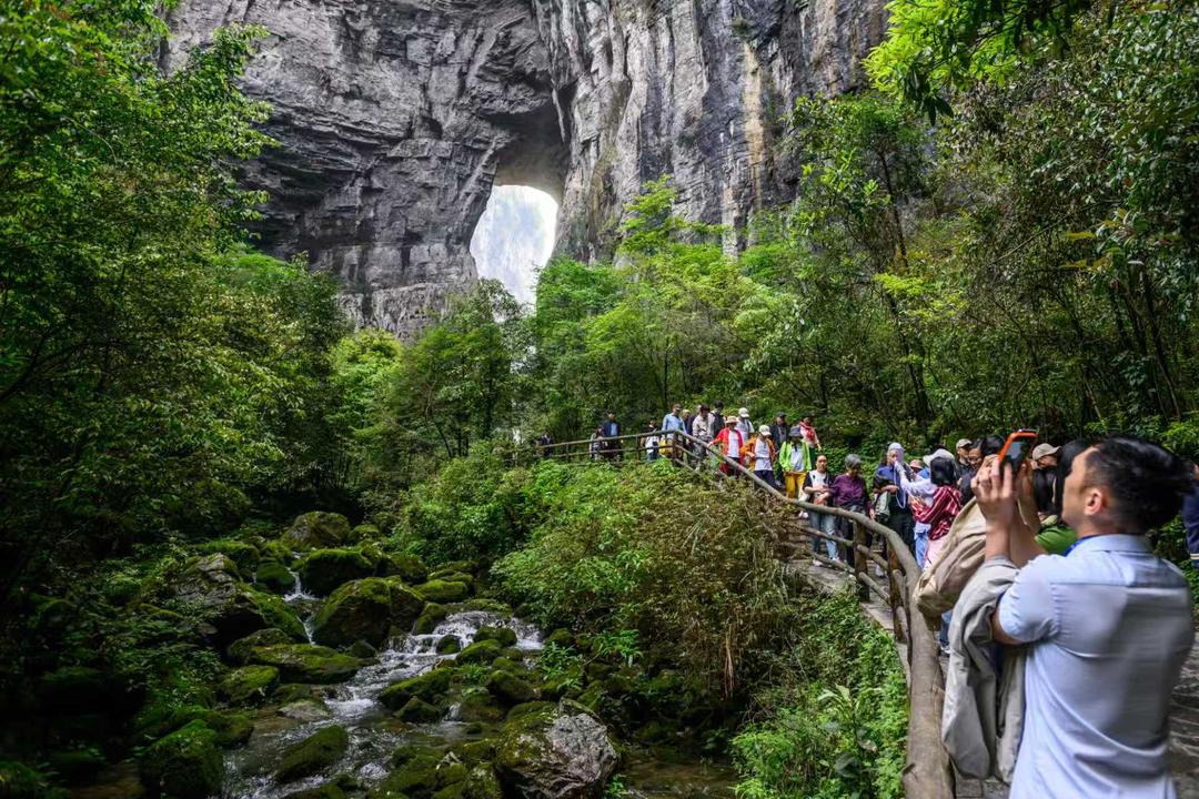 据介绍,位于重庆市武隆区的天生三桥,是重庆武隆岩溶国家地质公园的核心景观,也是中国南方喀斯特世界自然遗产的重要组成部分。这里以气势恢宏的天然石桥群与深邃壮丽的喀斯特地貌闻名,被誉为集科学研究、地质科普、生态旅游与影视文化于一体的世界级自然奇观。 天生三桥因三座天然石桥依次横跨峡谷而得名。这一奇景源于远古时期地下溶洞发生“串珠式”塌陷,逐渐演化形成如今规模宏大的天坑与石桥群。景区于2000年5月1日正式对外开放,全长约4公里,采取单向游览方式,游程约120分钟。作为国家5A级旅游景区和世界自然遗产地,天生三桥不仅吸引了大量游客,也成为影视创作的热门取景地,《满城尽带黄金甲》《变形金刚4》等多部知名影片均在此留下震撼画面。