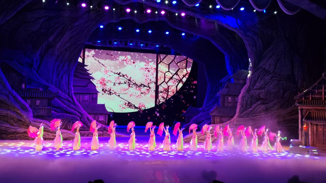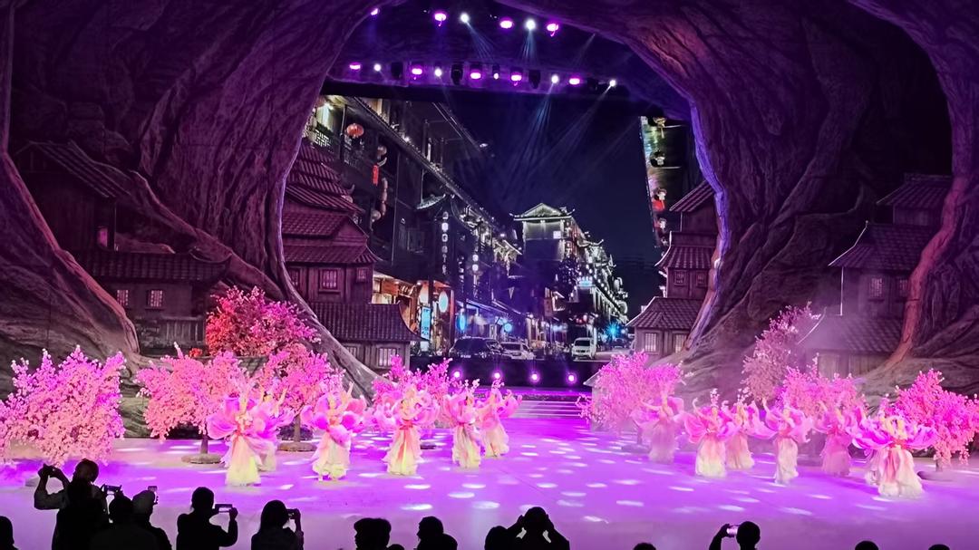 演出在舞台呈现上极具震撼力,融合裸眼3D、水幕、喷火特效与多层次光影技术,营造出如梦似幻的视觉效果,高度还原了“世外桃源”的诗意意境。整场演出既有艺术感染力,也富有互动体验感,生动展现了酉阳深厚的文化底蕴和独特的民族风情。 从地下奇观到山林秘境,从古城烟火到梦幻舞台,酉阳桃花源不仅是一处自然与人文交织的旅游胜地,更是一扇读懂渝东南山水风貌与民族文化的窗口。随着《梦幻桃源》的持续上演,这片现实版“世外桃源”正以更加鲜活、生动的方式,向世界讲述属于酉阳的山水故事与文化传奇。 推广