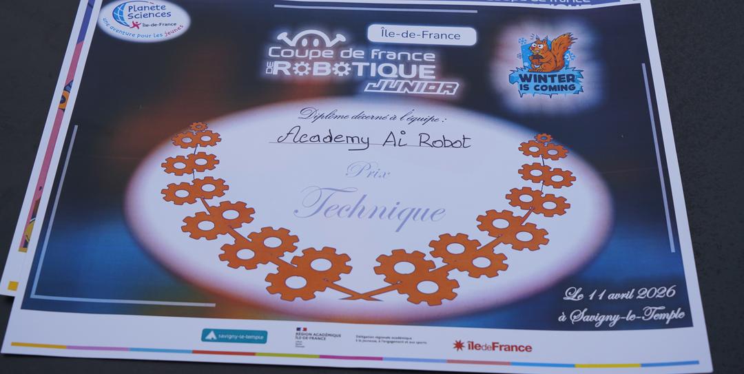 《法国侨报》讯:自古英雄出少年!2026年4月11日,在刚刚落幕的2026年法国机器人杯法兰西岛大区赛(Coupe de France de Robotique Île-de-France)中,一支由巴黎华人青少年组成的机器人团队Academy AI Robot表现亮眼,从数十支优秀队伍中脱颖而出,一举斩获大区亚军,并同时摘得极具含金量的技术奖(Prix Technique)。凭借这一优异成绩,团队成功晋级将于5月举行的全国总决赛,并向更高目标发起冲击。当地市长亲笔贺信热烈祝贺!