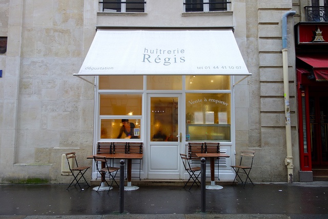白色的店面,袖珍可爱。店主每天都会从法国大西洋海岸Marennes的Oleron地区采集蚌。这里规定顾客至少要点两份牡蛎。另外,贝类菜式、面包配咸黄油也是不错的选择。