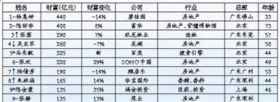 根据2014年胡润女富豪榜,33岁的杨惠妍以财富440亿元蝉联“女首富”宝座,这是该榜发布9年来,杨惠妍第四次成为全国女首富;73岁的陈丽华以400亿元保持第二,连续两年成为中国白手起家女首富,也是全球白手起家女首富;57岁的张茵以290亿元位列第三,位列中国和全球白手起家女富豪第二位。