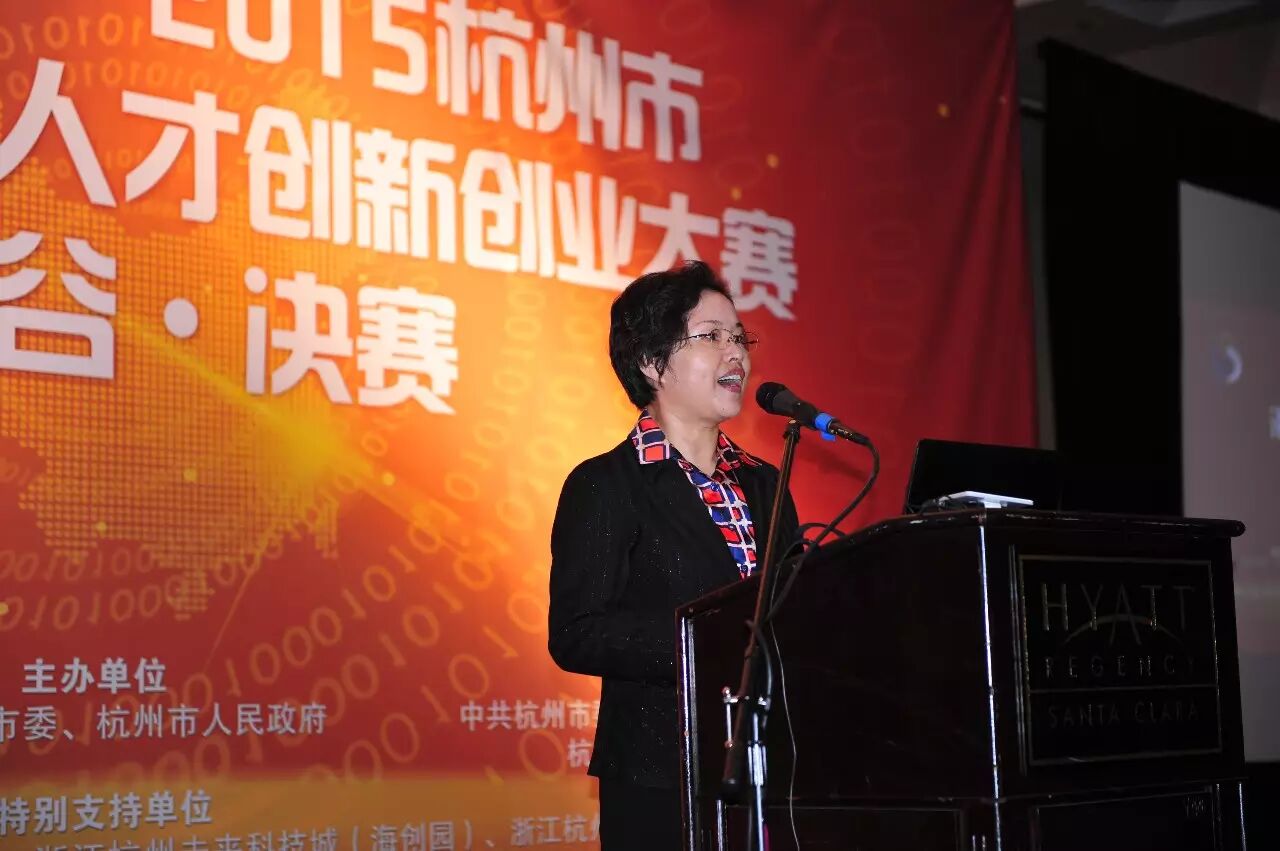 美国旧金山当地时间9月26日,由杭州市委、市政府主办的“创客天下·2015杭州市海外高层次人才创新创业大赛”决赛在美国硅谷落下帷幕。中华人民共和国驻旧金山总领馆副总领事邓繁华先生,杭州市委组织部常务副部长、市委人才办主任陈国妹出席大赛并致辞。
