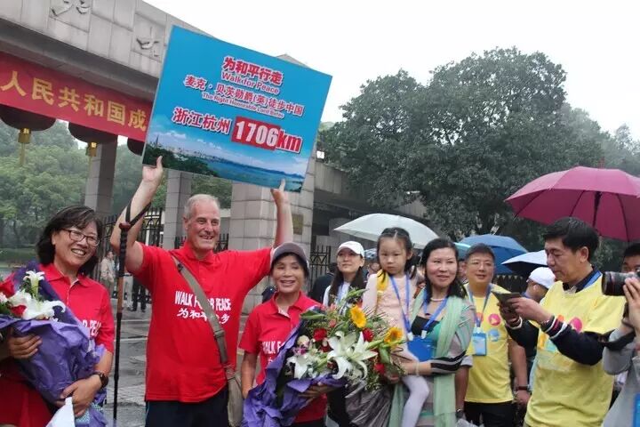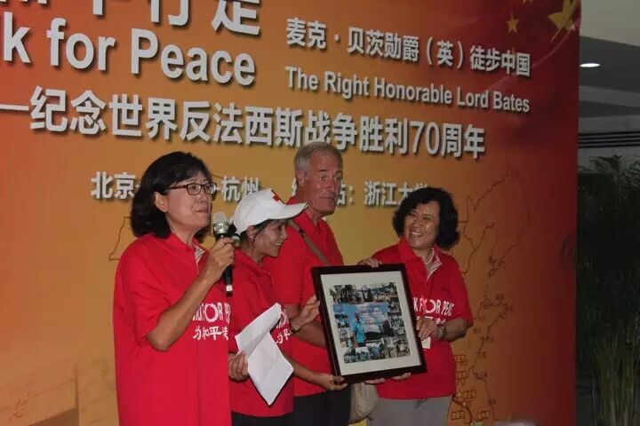 本报讯:一个外国人,英国贝茨勋爵以自己独特的方式,纪念抗战胜利70周年:行经中国5省市,历时71天,总行程1701公里。10月5日,以个人身份来华开展“为和平行走”徒步中国活动的英国麦克·贝茨勋爵顺利抵达浙江杭州,完成了他在中国开展的“为和平行走”的活动。