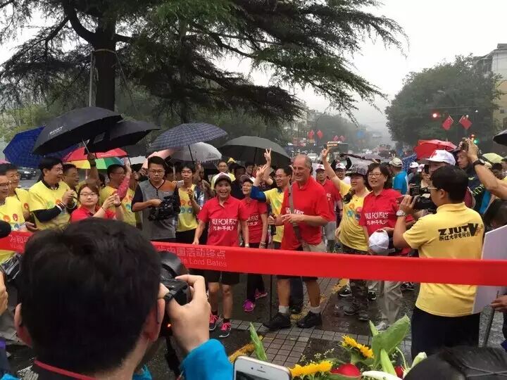 一个背包,一双球鞋,一根手杖,一脸诚恳,一个年过半百的英国高官,居然顶酷暑,踏泥泞,每日风雨兼程,穿越1701公里,自7月27日从北京出发,一步一步,连续走了71天,途径5个省40多个区县,今天傍晚四点半终于冒雨完成了徒步的最后旅程,来到爱人雪琳的家乡杭州----浙江大学玉泉校区大门口。