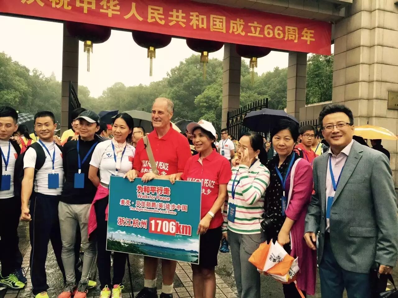 作为 “中国女婿”的麦克勋爵一直为英中两国友好而努力,他表示,这次他和夫人李雪琳选择中国作为他们第四次“为和平徒步”,除了是纪念反法西斯战争70周年和为中英文化交流年加油,还因为中国是一个非常热爱和平的国家,而70前英国和中国两国是盟友,所以他选择中国作为这次徒步行是有非常特殊的意义。