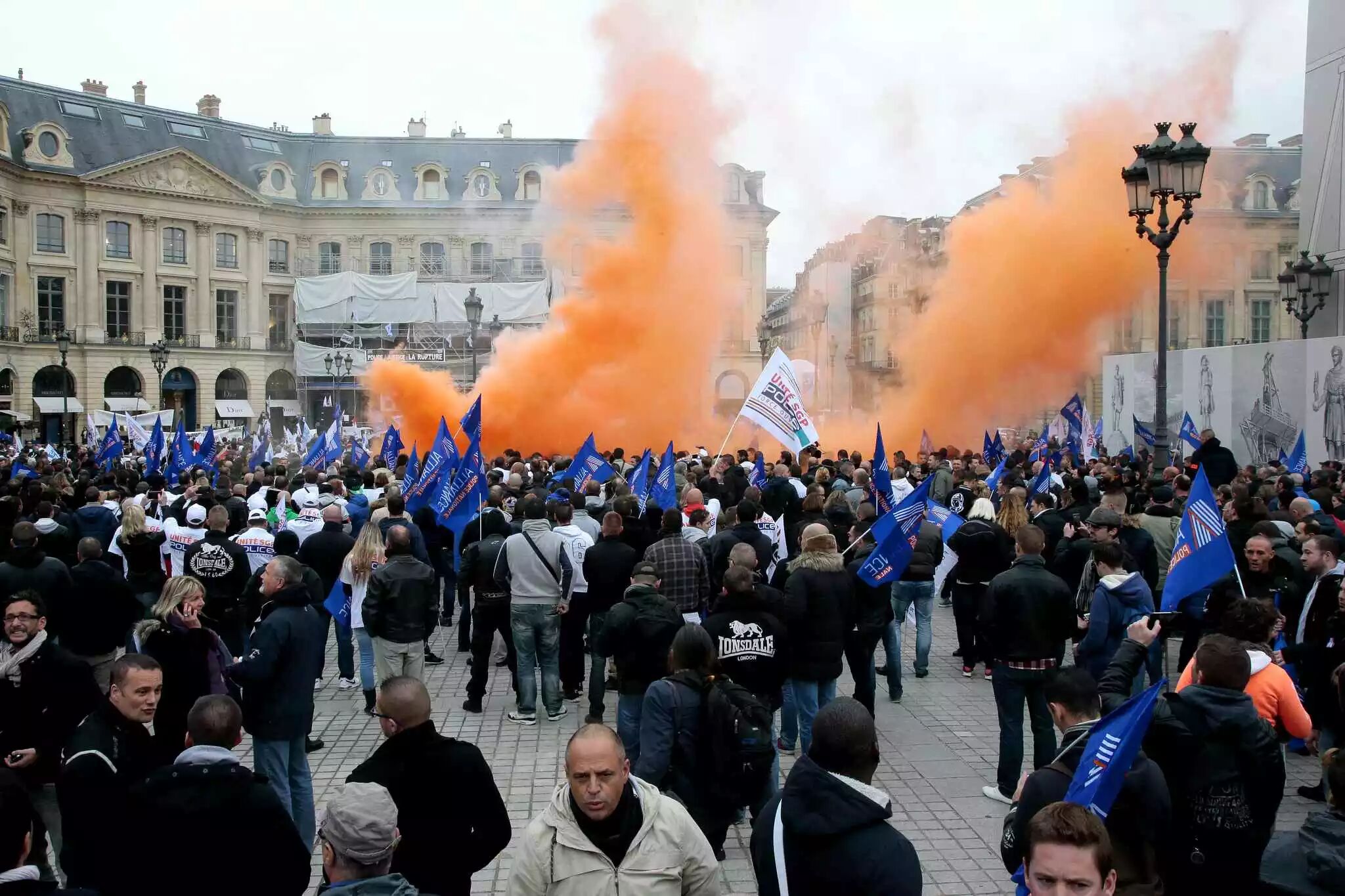 [size=2.7em]据[size=1em]“中央社”14日报道,数百名法国警察14日聚集抗议司法部的改革措施加重警察负担,他们自巴黎恐怖攻击事件以来,承受过劳和资源不足的压力,已经忍无可忍。