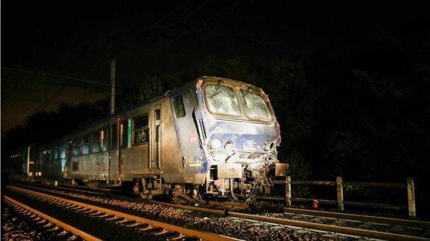 法国时间2015年10月21日,法国图朗,一列区间快速铁路与一辆卡车相撞,造成15人轻伤。法国国营铁路公司的员工在发生事故的列车前,检查受损情况。卡车与快铁发生相撞后,整辆车基本完全损毁。发生撞车事故的平交路口,事故造成15人轻伤。