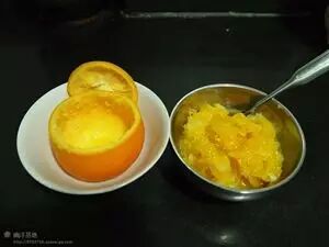 粒粒橙入盅!说实话,这个东西口感并不好,因为橙子加热就不可避免地有苦味。不管怎样都比咳得难受要好,也比吃药来的好。