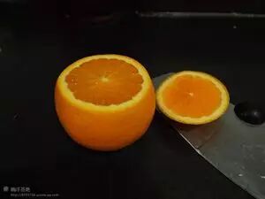 切橙盅。就是把橙子横切一刀,上面小,下面大。